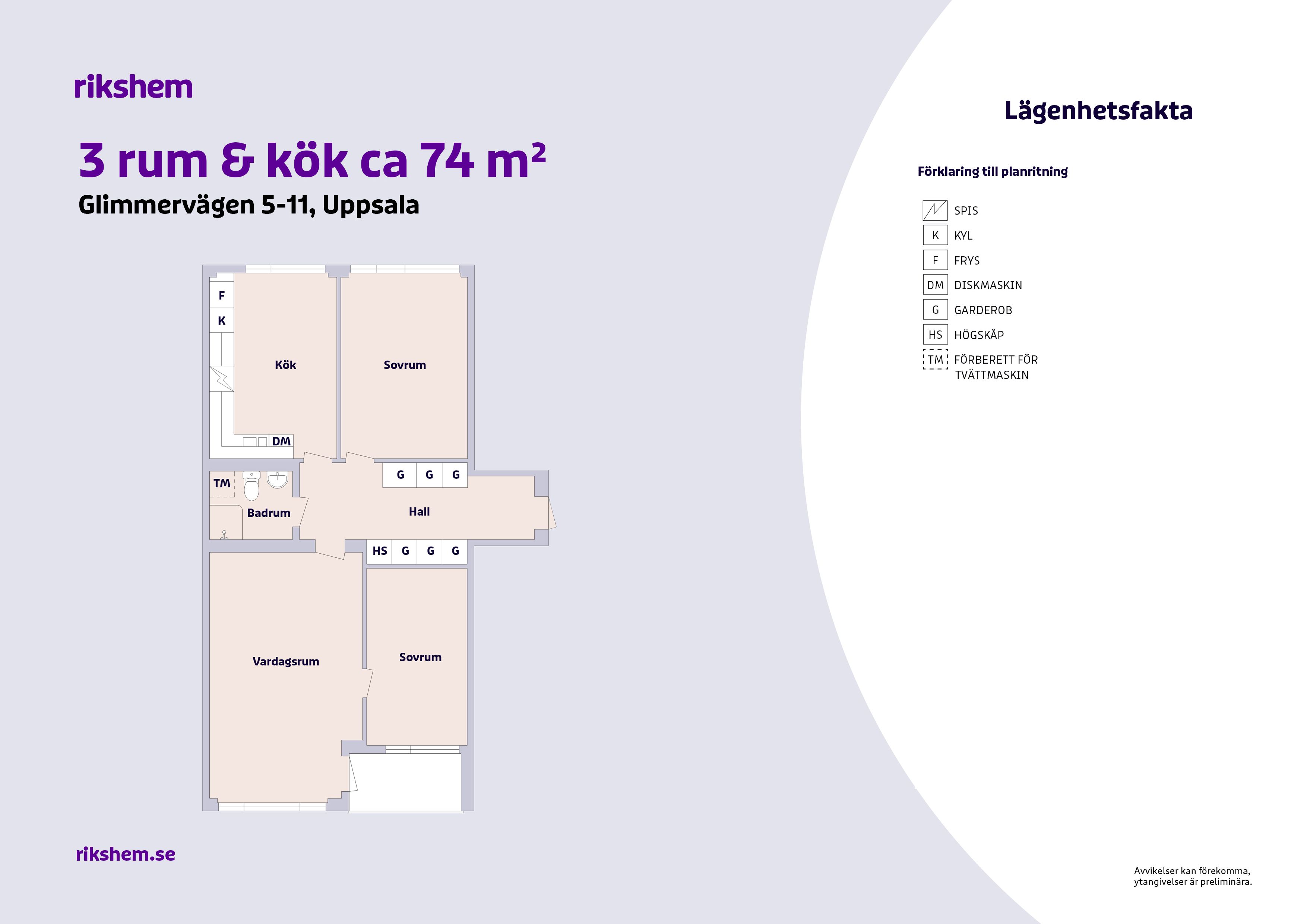 Rikshem reserverar sig mot eventuella fel eller avvikelser som kan förekomma i lägenhetsannonsen eller i planritningen.