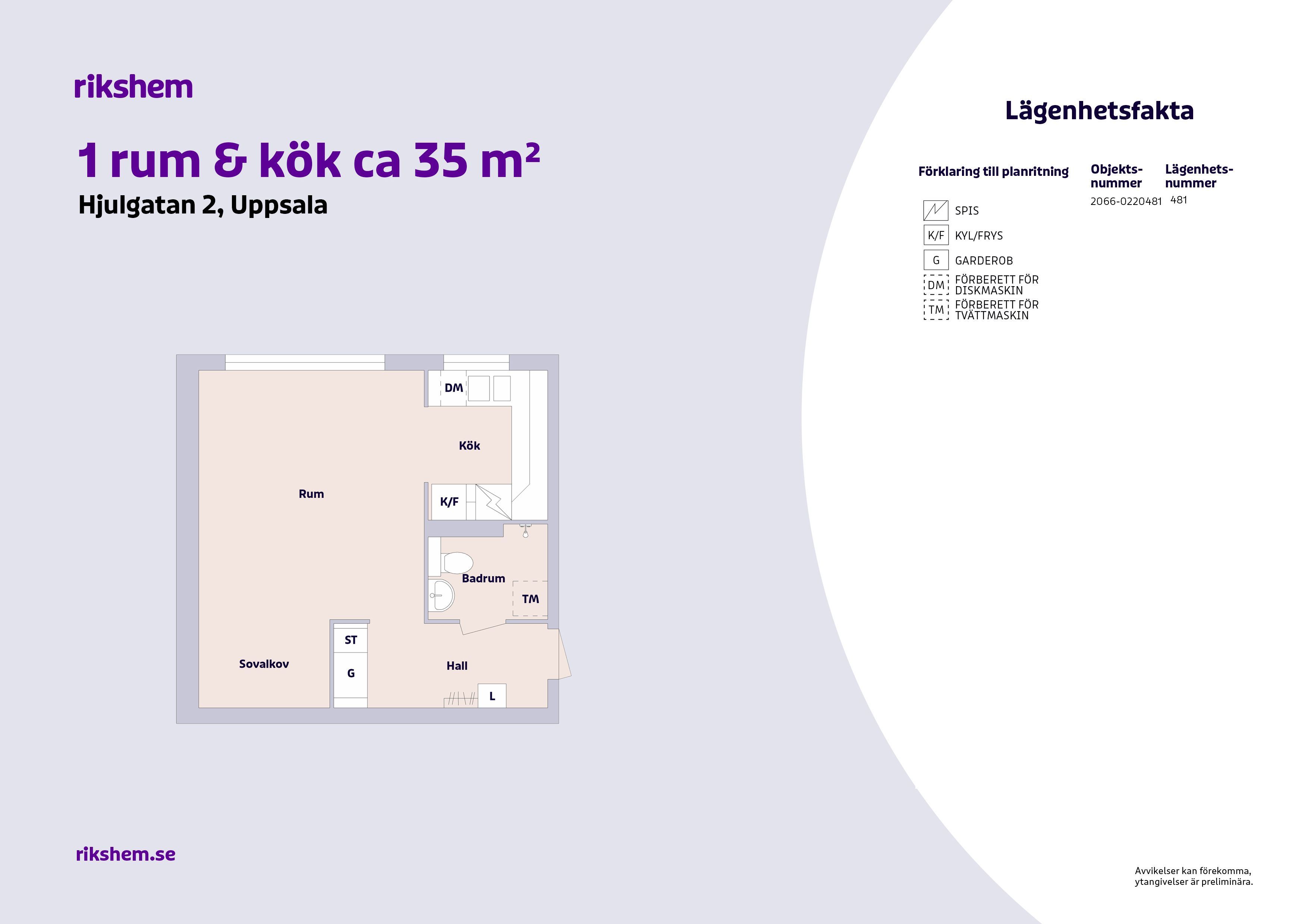 Rikshem reserverar sig mot eventuella fel eller avvikelser som kan förekomma i lägenhetsannonsen eller i planritningen.
