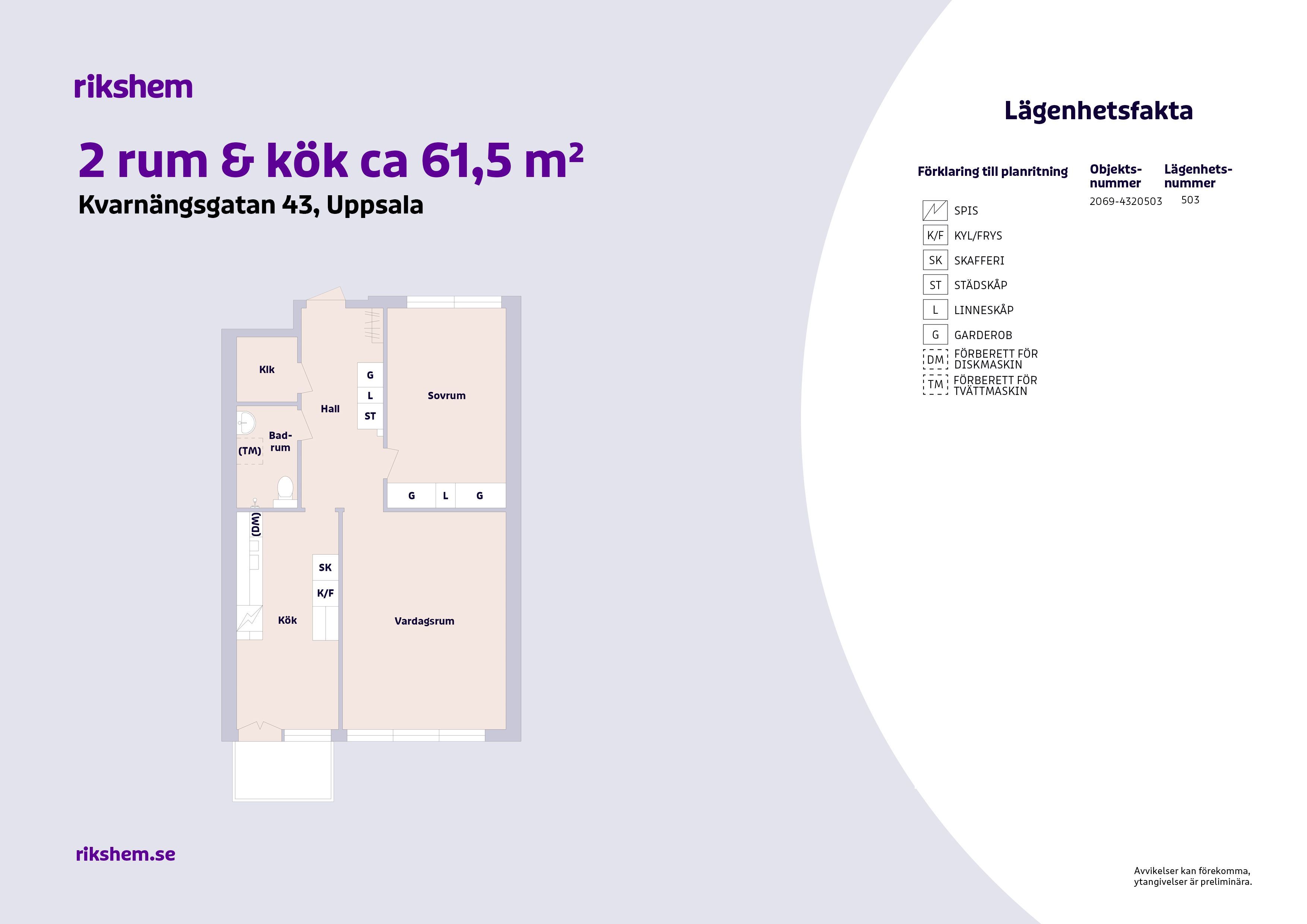 Rikshem reserverar sig mot eventuella fel eller avvikelser som kan förekomma i lägenhetsannonsen eller i planritningen.