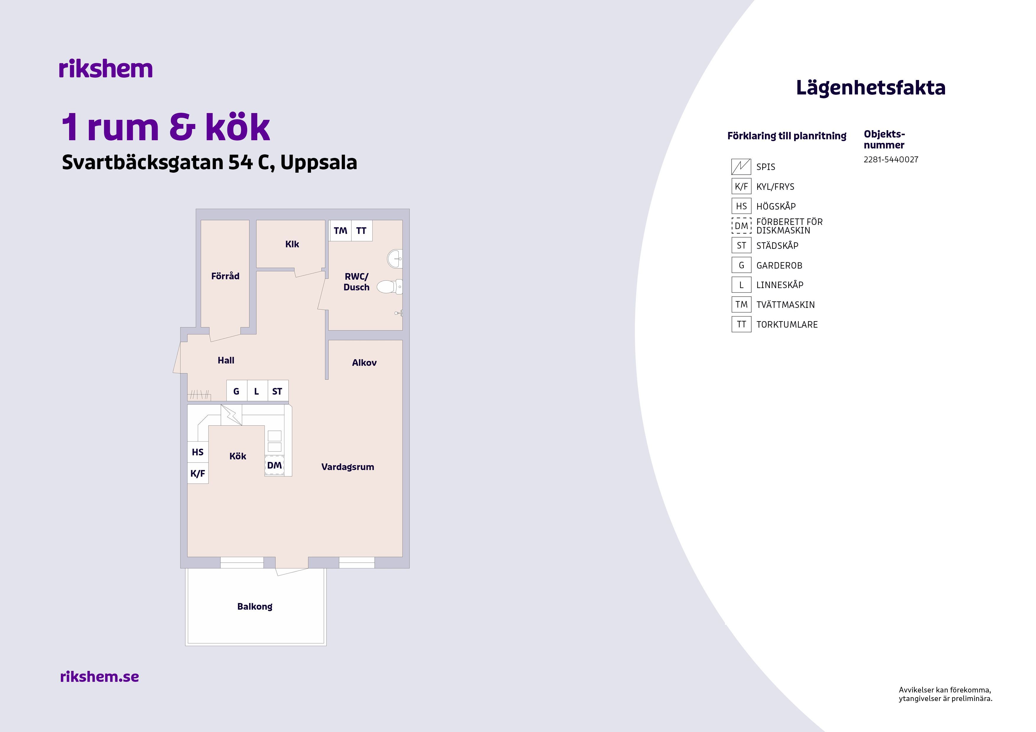 Rikshem reserverar sig mot eventuella fel eller avvikelser som kan förekomma i lägenhetsannonsen eller i planritningen.