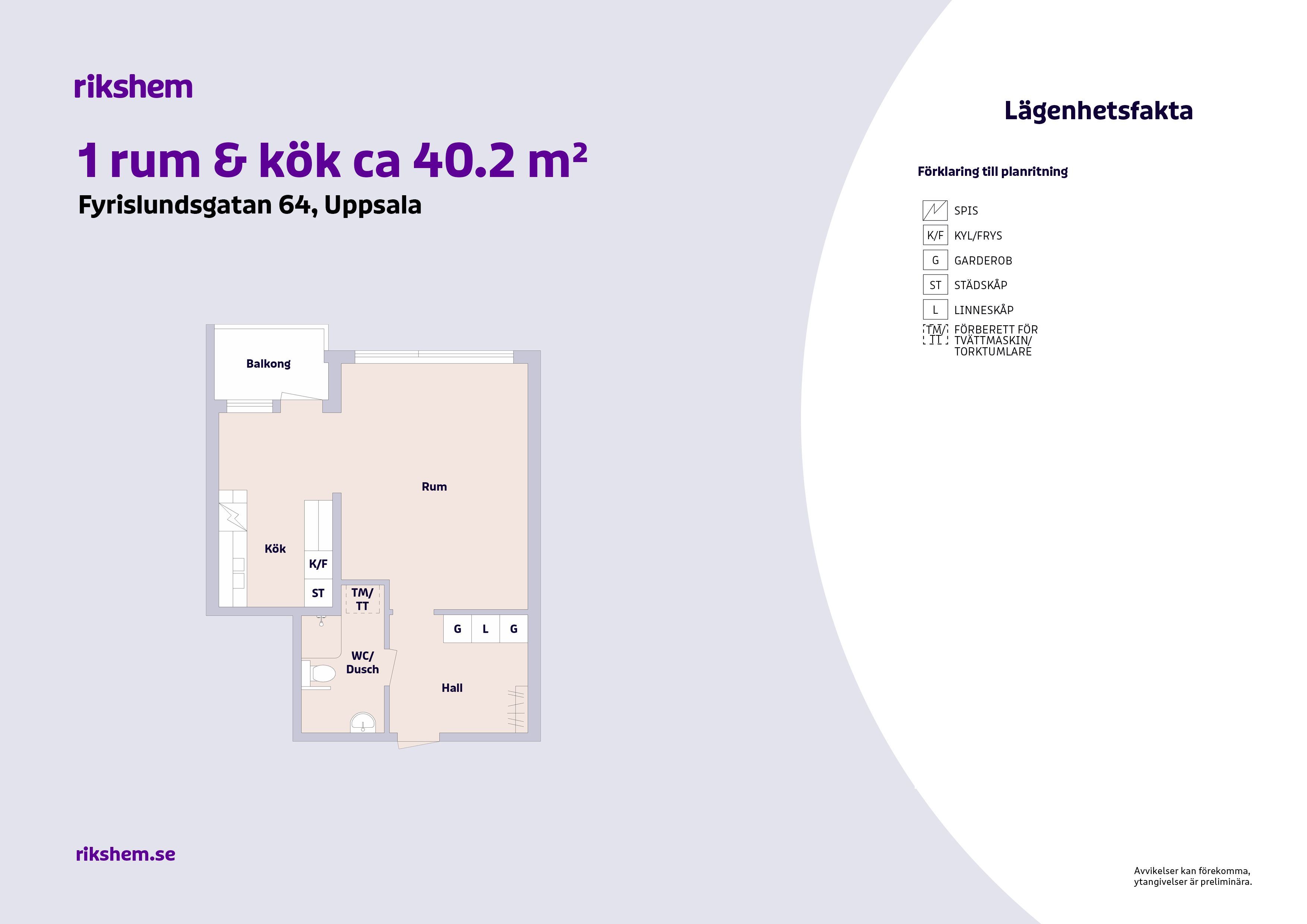Rikshem reserverar sig mot eventuella fel eller avvikelser som kan förekomma i lägenhetsannonsen eller i planritningen.