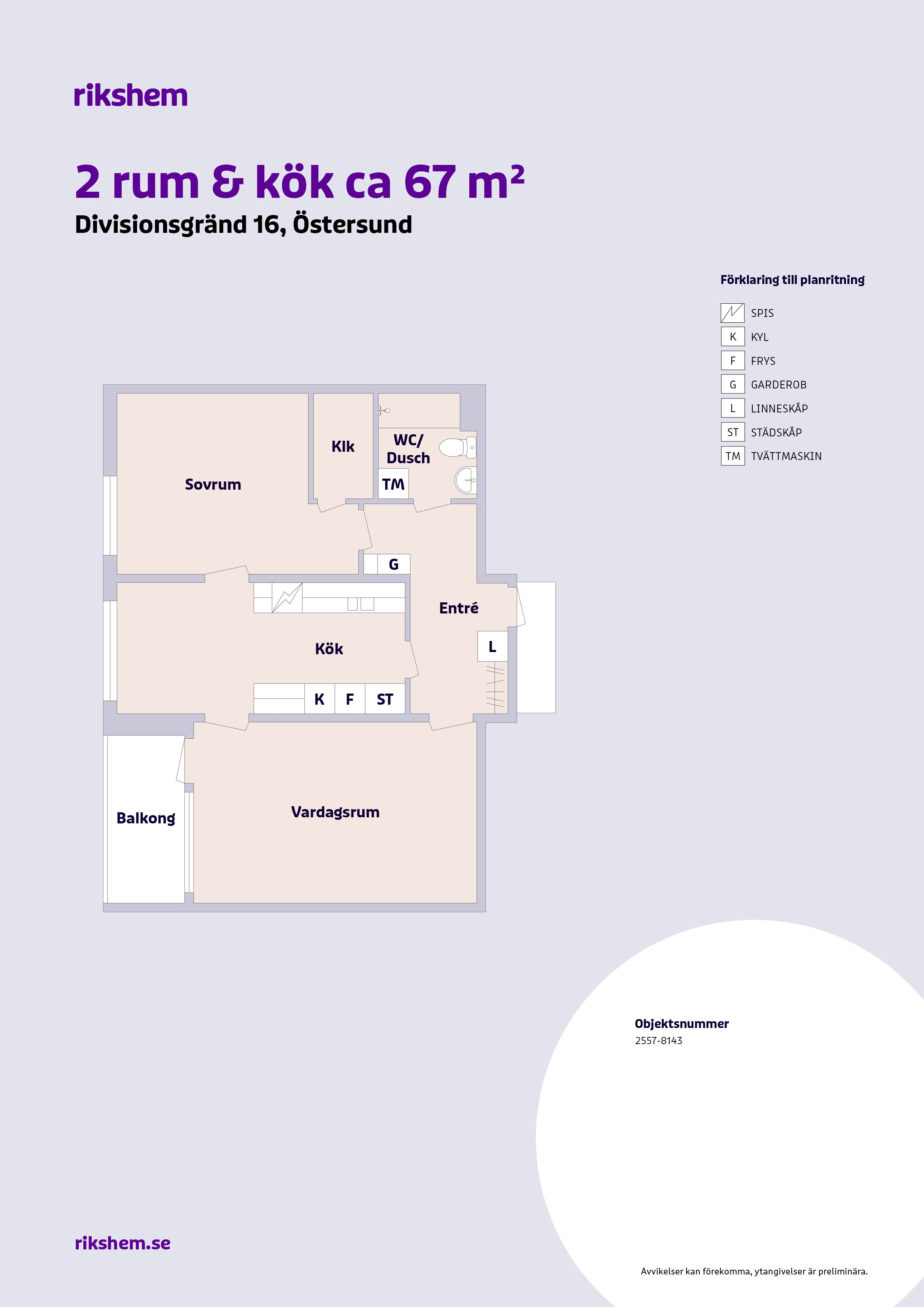 Rikshem reserverar sig mot eventuella fel eller avvikelser som kan förekomma i lägenhetsannonsen eller i planritningen.