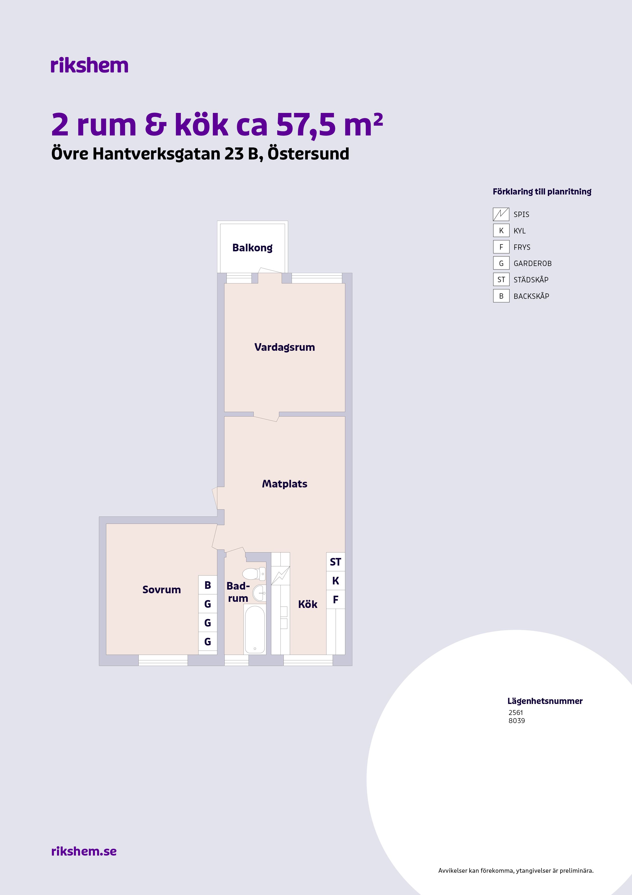 Rikshem reserverar sig mot eventuella fel eller avvikelser som kan förekomma i lägenhetsannonsen eller i planritningen.