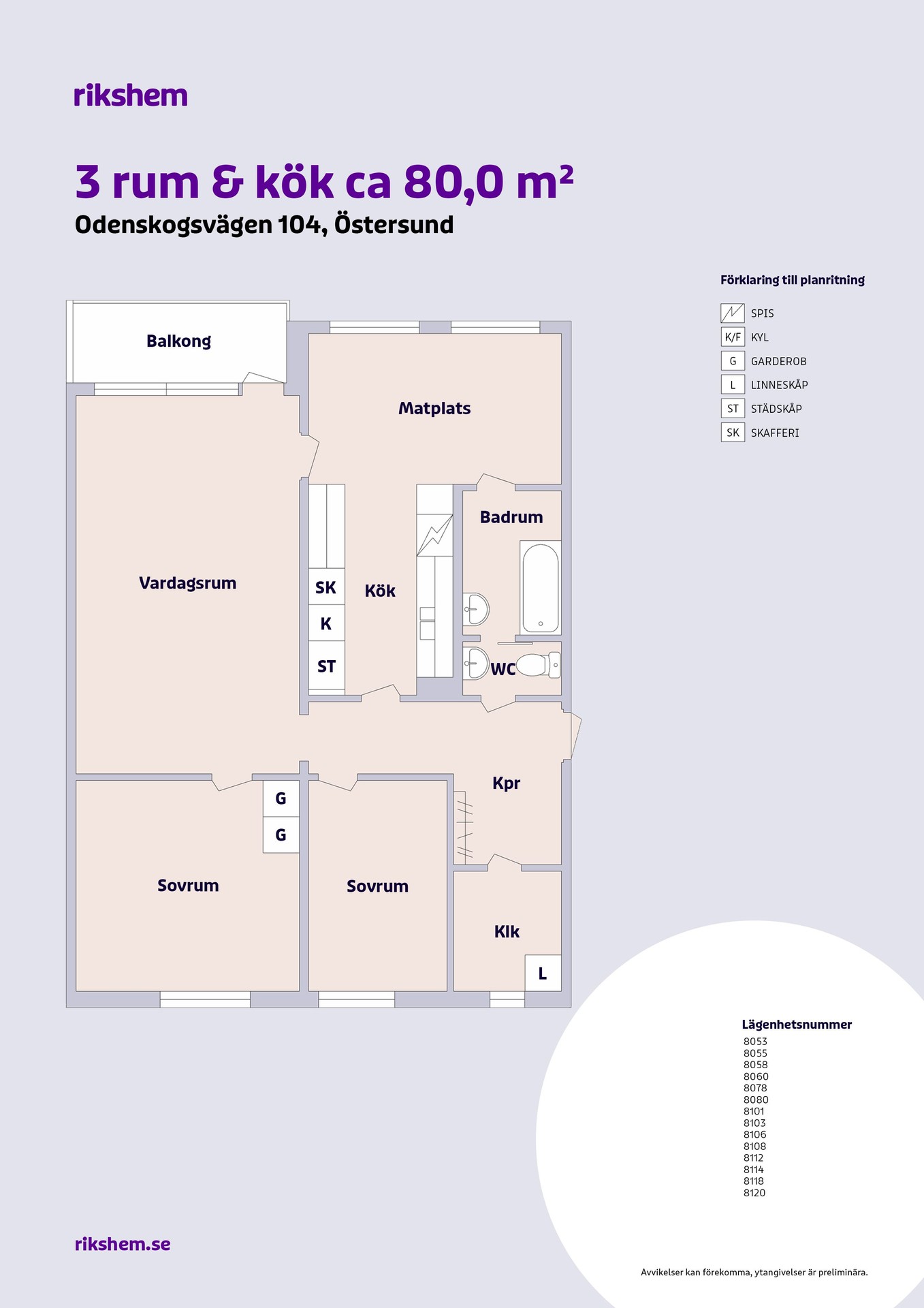 Rikshem reserverar sig mot eventuella fel eller avvikelser som kan förekomma i lägenhetsannonsen eller i planritningen.