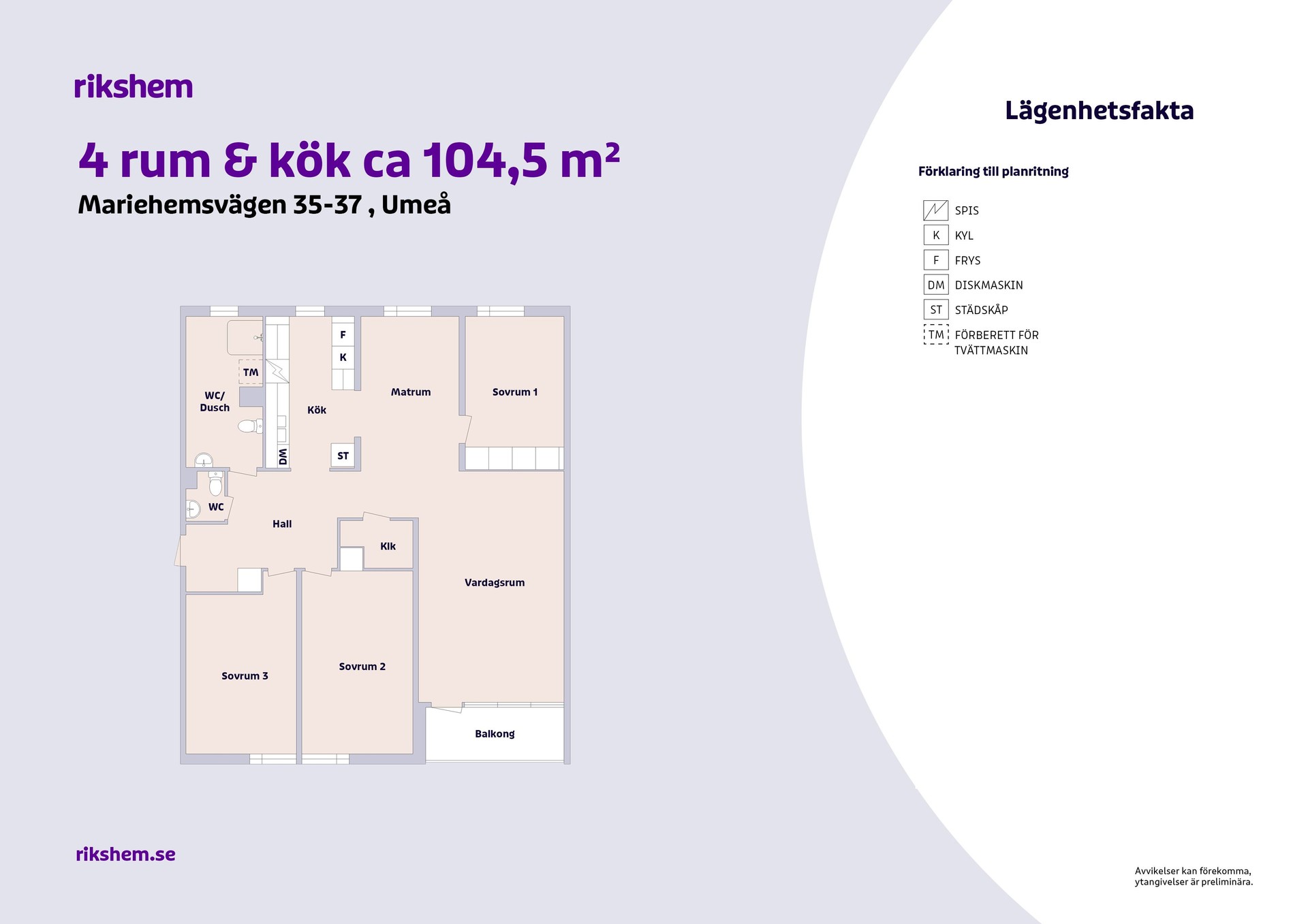 Rikshem reserverar sig mot eventuella fel eller avvikelser som kan förekomma i lägenhetsannonsen eller i planritningen.