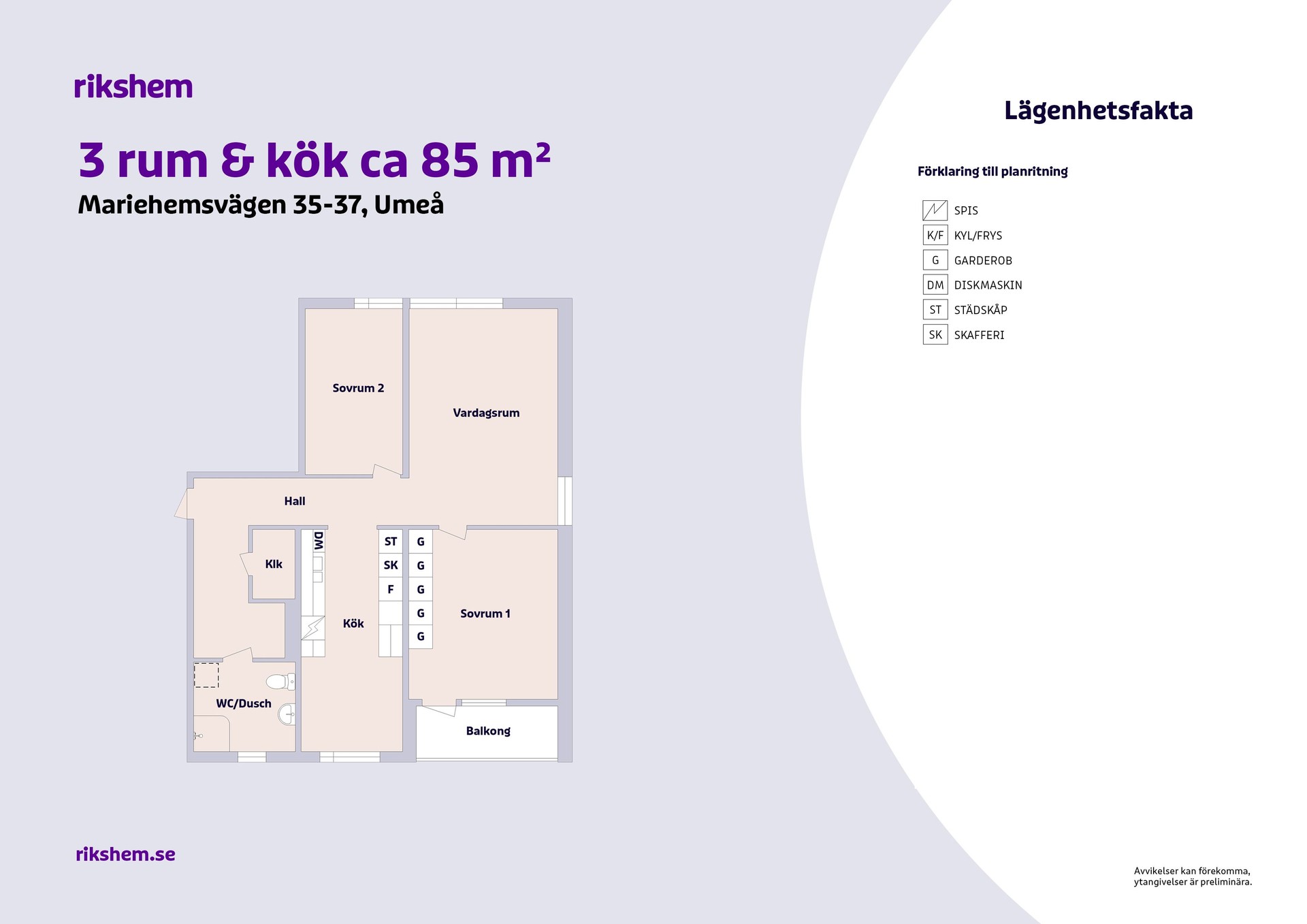 Rikshem reserverar sig mot eventuella fel eller avvikelser som kan förekomma i lägenhetsannonsen eller i planritningen.