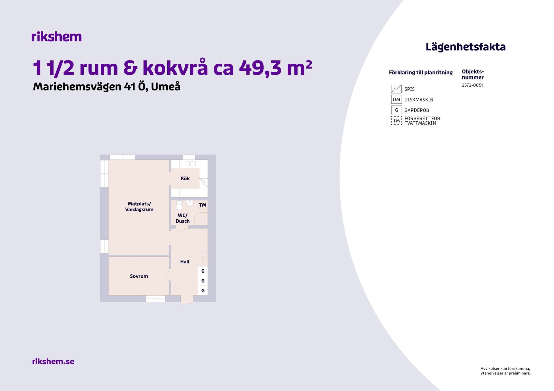 Rikshem reserverar sig mot eventuella fel eller avvikelser som kan förekomma i lägenhetsannonsen eller i planritningen.