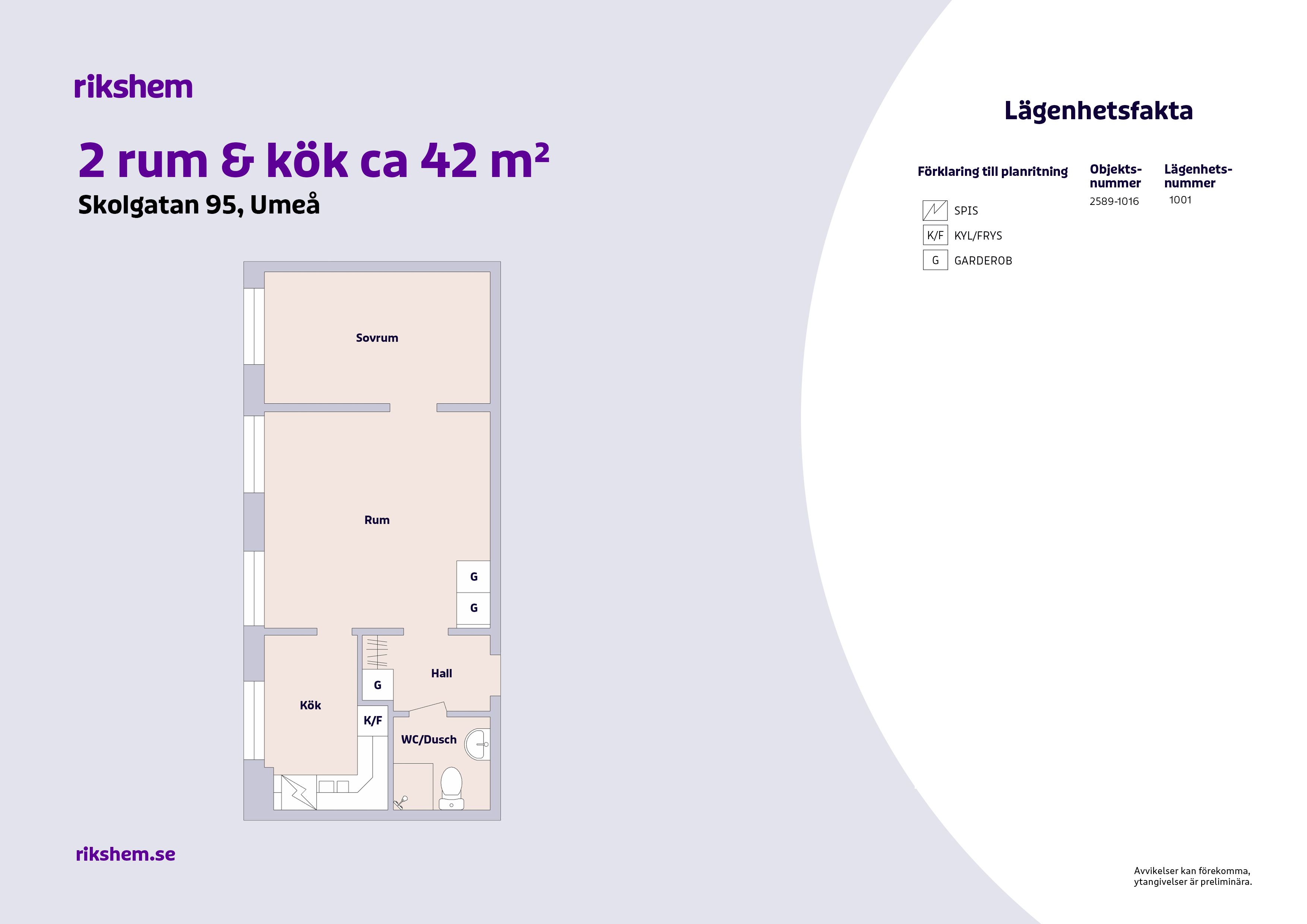 Rikshem reserverar sig mot eventuella fel eller avvikelser som kan förekomma i lägenhetsannonsen eller i planritningen.