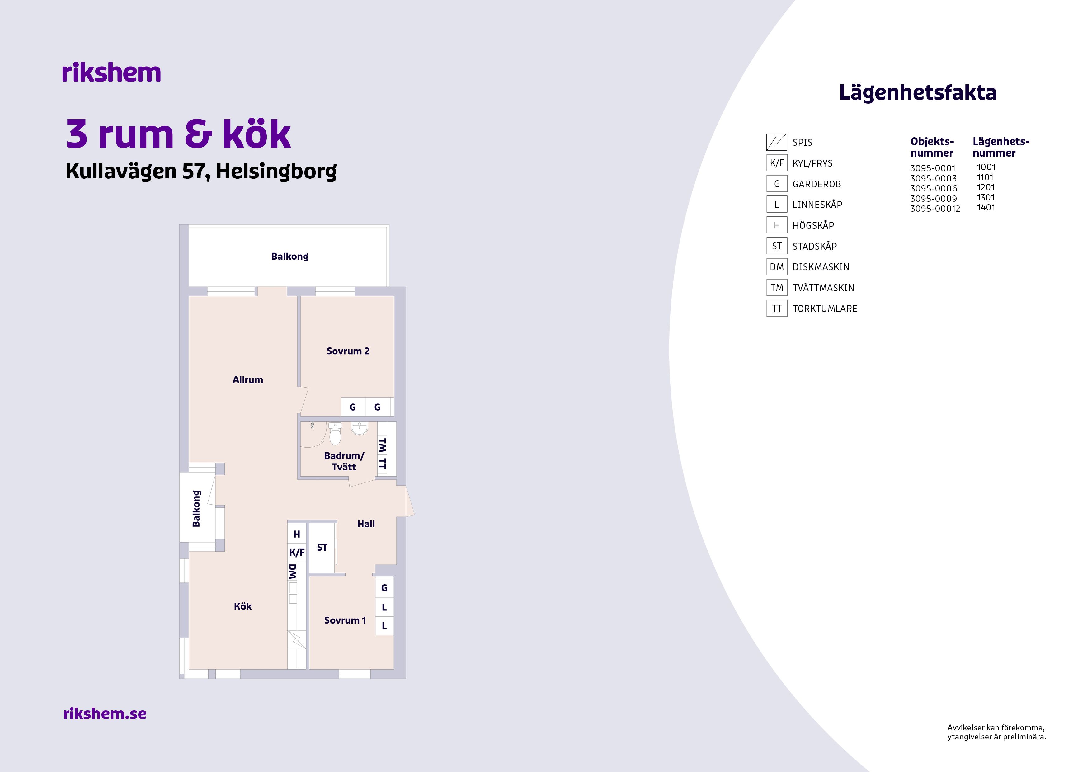 Rikshem reserverar sig mot eventuella fel eller avvikelser som kan förekomma i lägenhetsannonsen eller i planritningen.