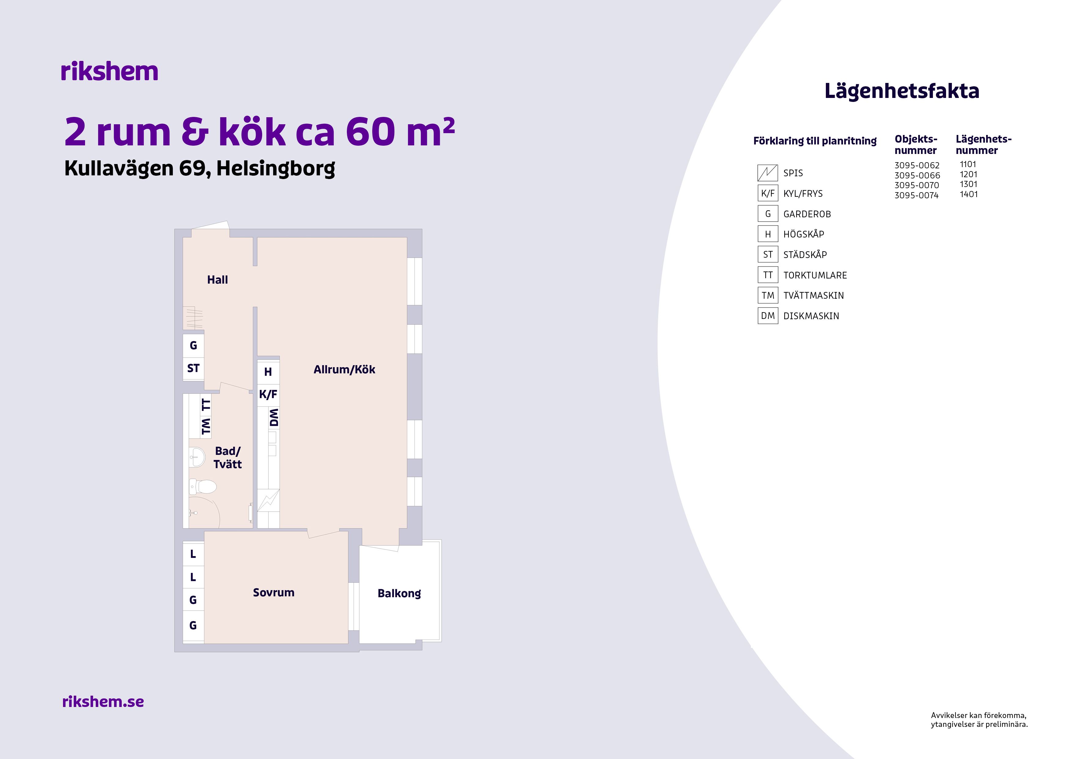 Rikshem reserverar sig mot eventuella fel eller avvikelser som kan förekomma i lägenhetsannonsen eller i planritningen.