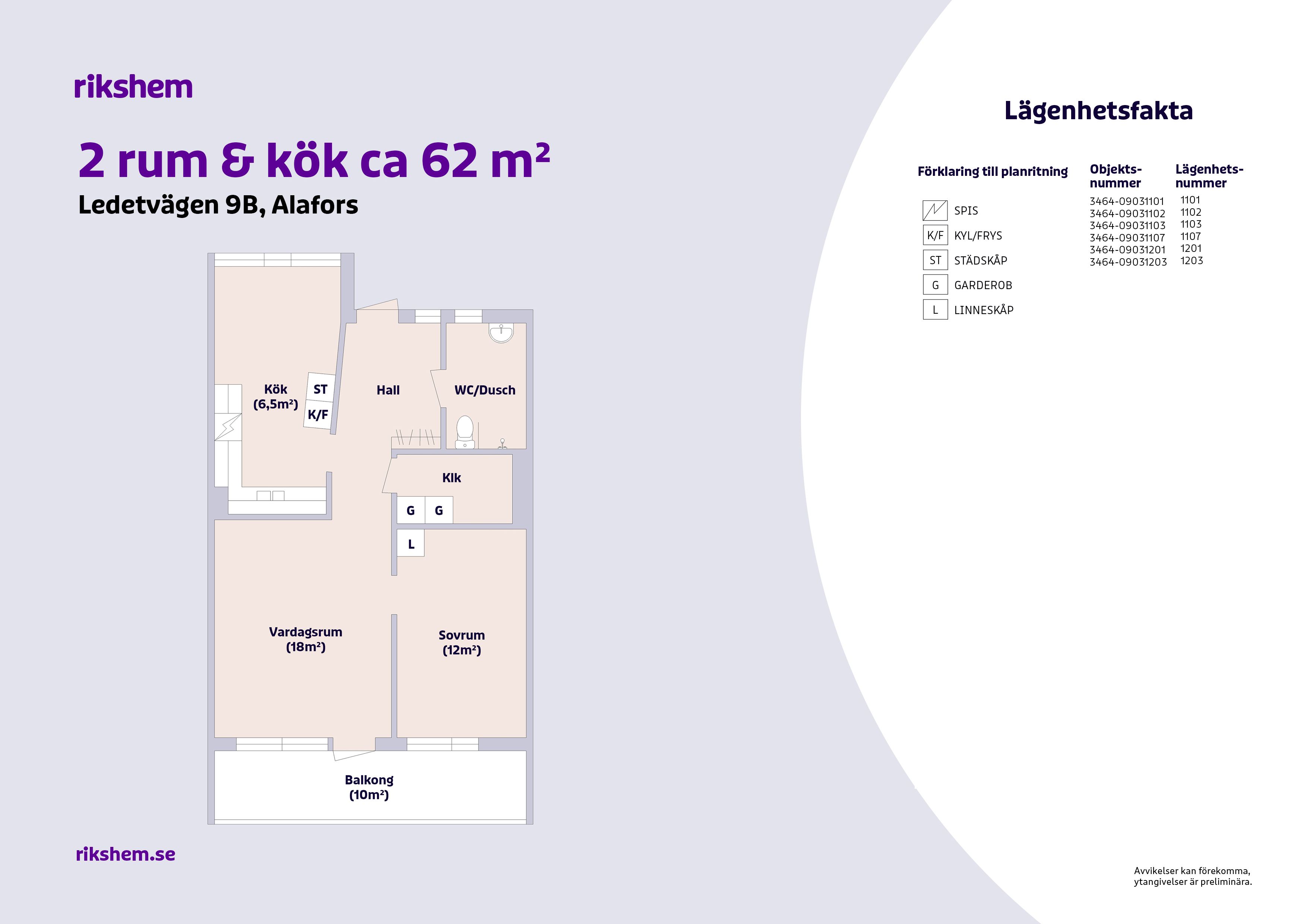 Rikshem reserverar sig mot eventuella fel eller avvikelser som kan förekomma i lägenhetsannonsen eller i planritningen.