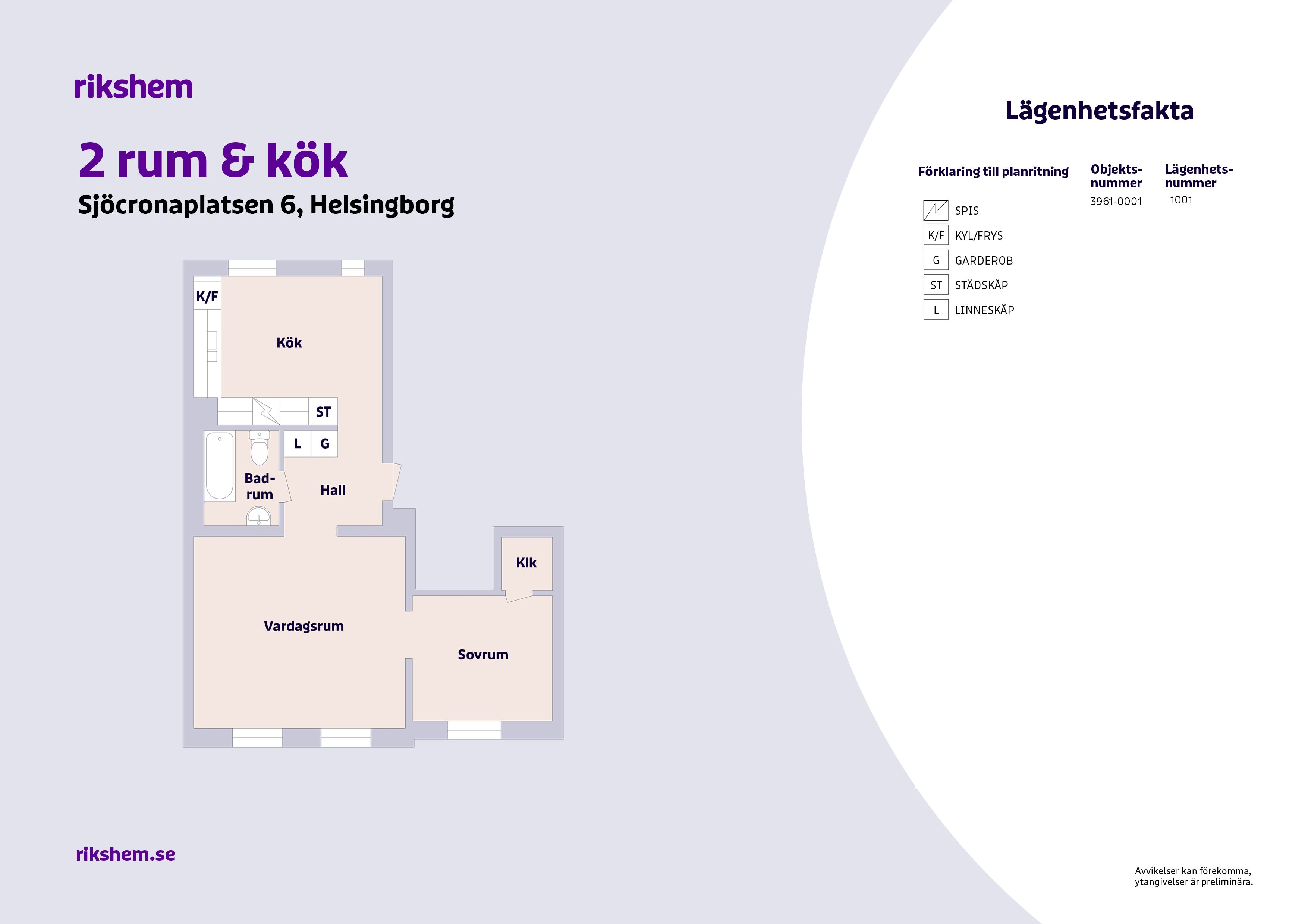 Rikshem reserverar sig mot eventuella fel eller avvikelser som kan förekomma i lägenhetsannonsen eller i planritningen.