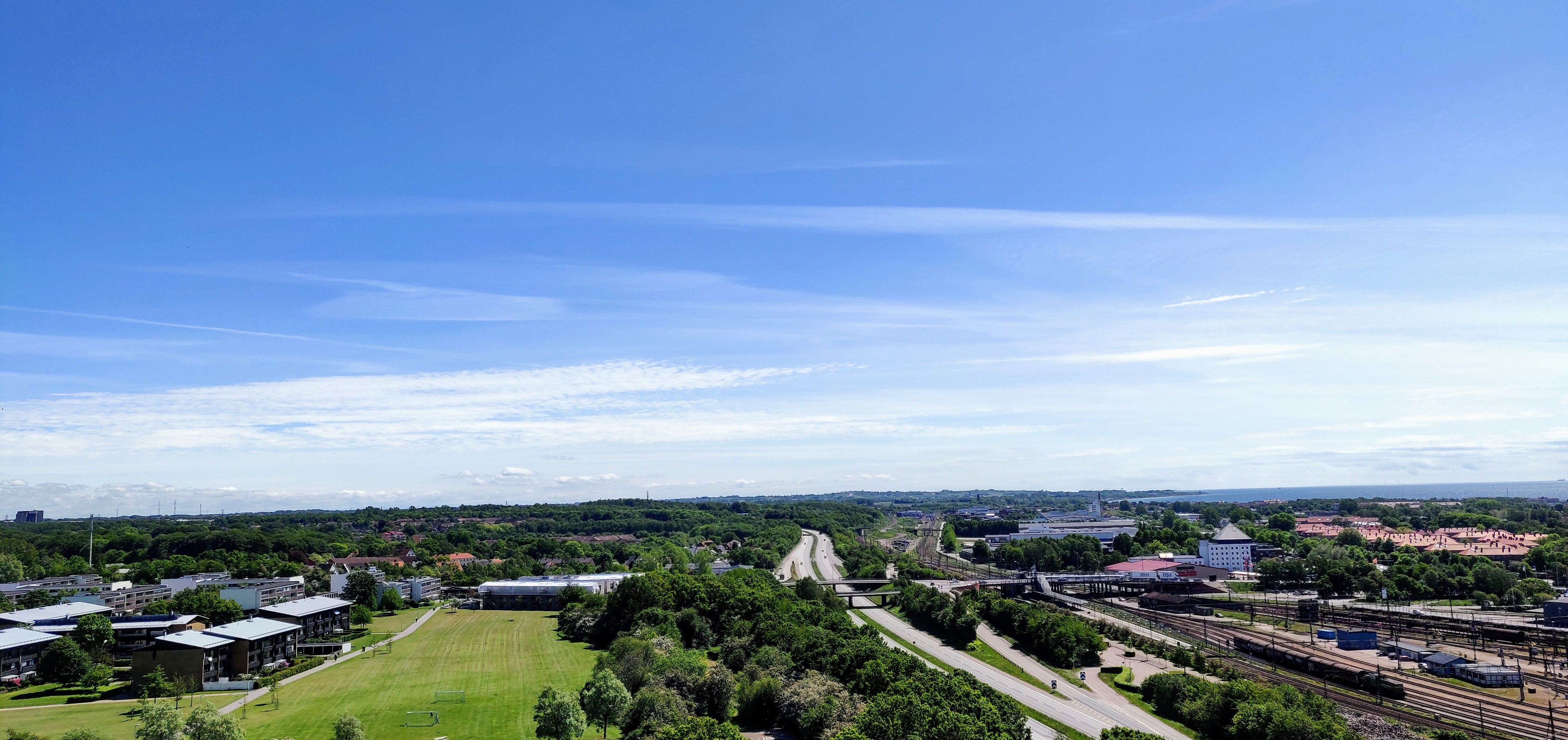 De fem höghusen i Rikshems bestånd ligger på en höjd sett från Helsingborgs södra infart. Byggnaderna syns tydligt och sträcker sig mot skyn. Vi är stolta över att husen är ritade av Jørn Utzon, samma arkitekt som ritat det berömda operahuset i Sydney.