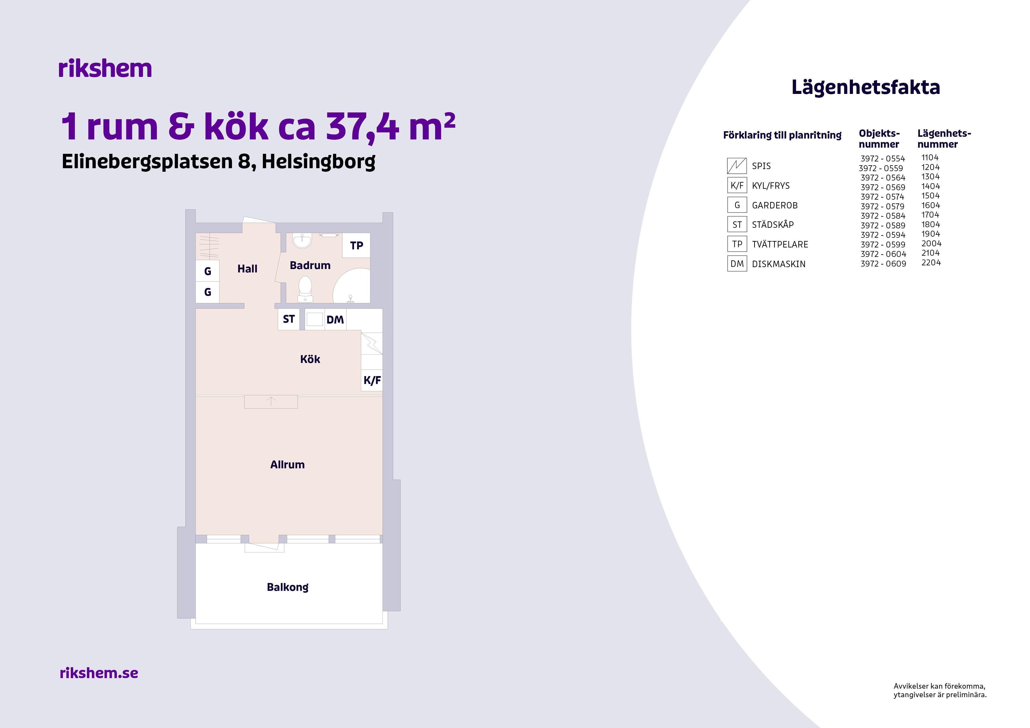 Rikshem reserverar sig mot eventuella fel eller avvikelser som kan förekomma i lägenhetsannonsen eller i planritningen.