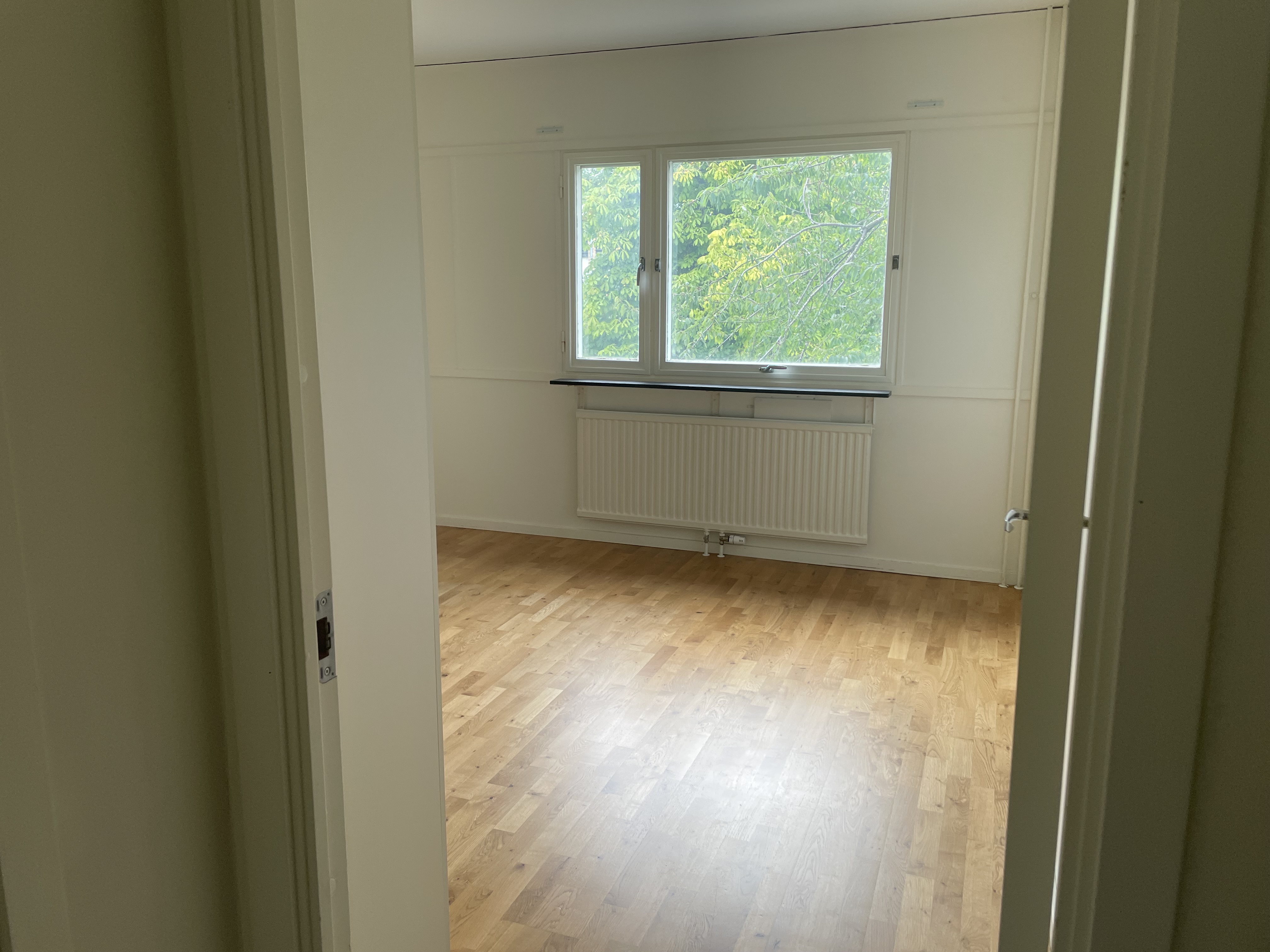 Lägenheten har ett vackert ekparkettgolv genomgående i hela lägenheten.