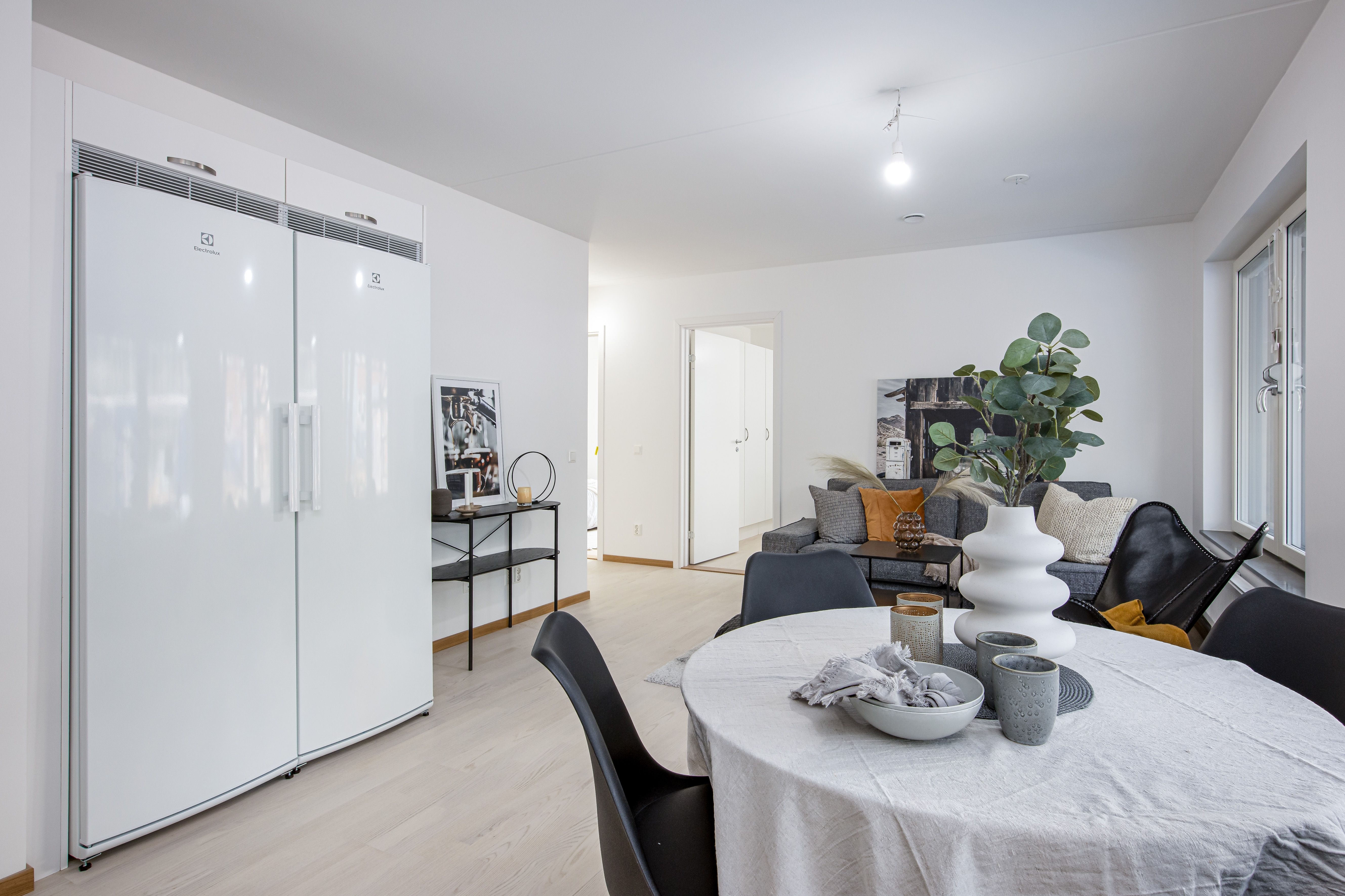 I hyran ingår värme, kall- och varmvatten. Hyresgästen tecknar eget abonnemang för hushållsel.
