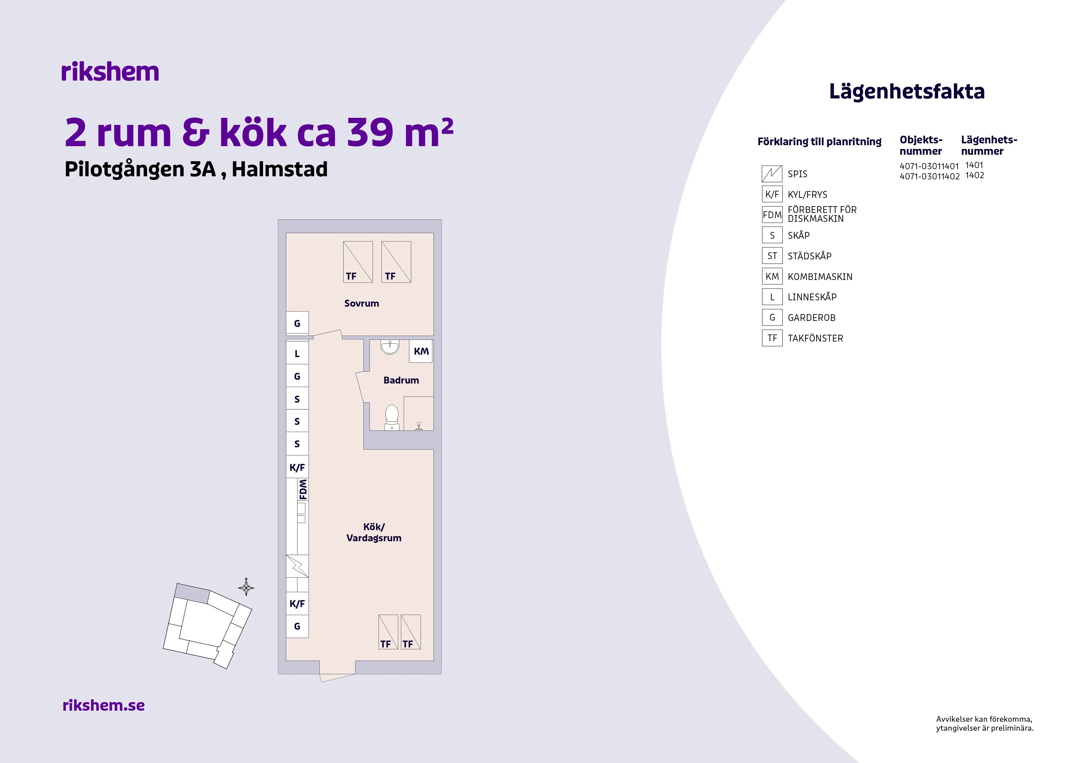 Rikshem reserverar sig mot eventuella fel eller avvikelser som kan förekomma i lägenhetsannonsen eller i planritningen.