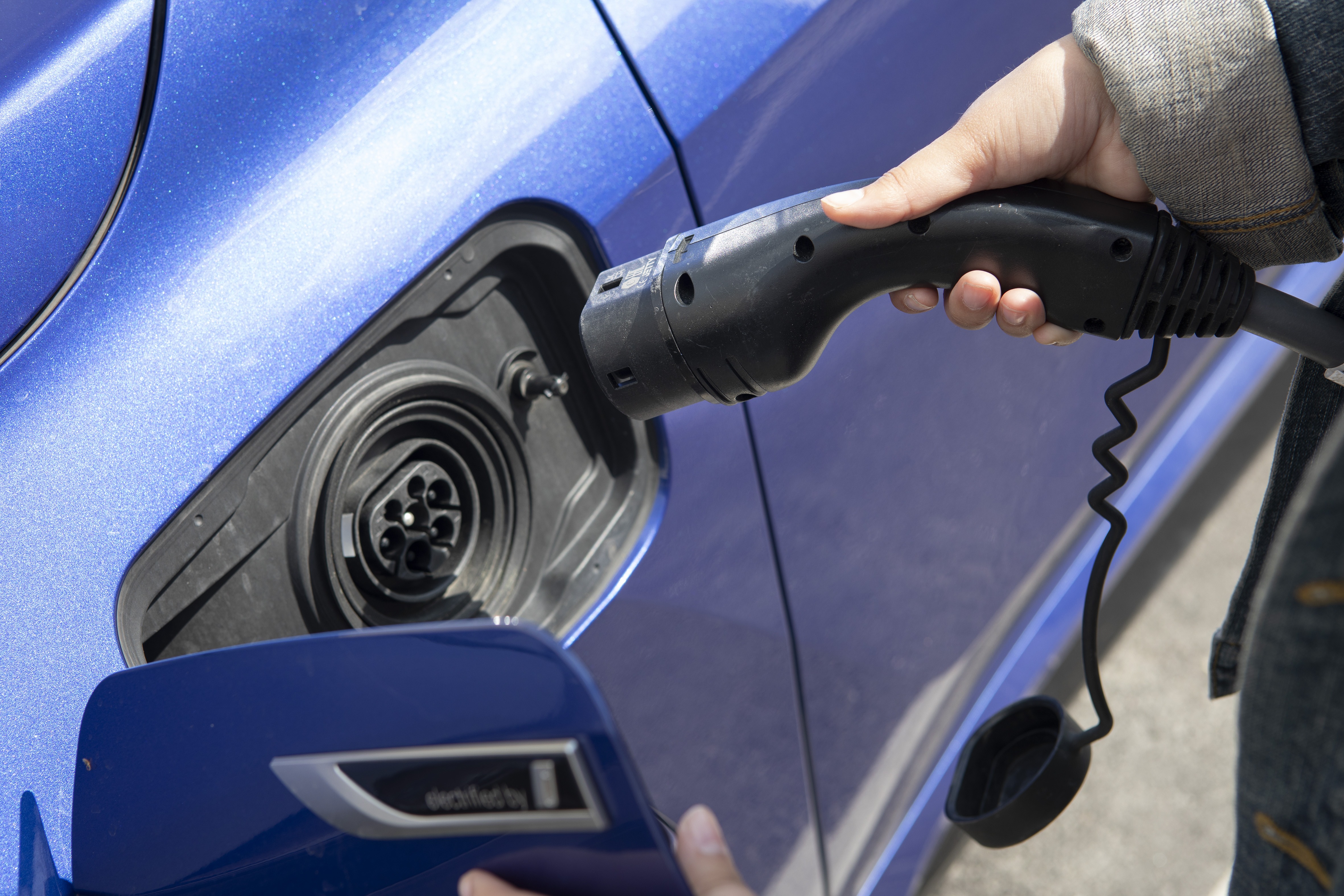 Parkeringsplats nr 4 med laddstolpe avsedd för elbil.