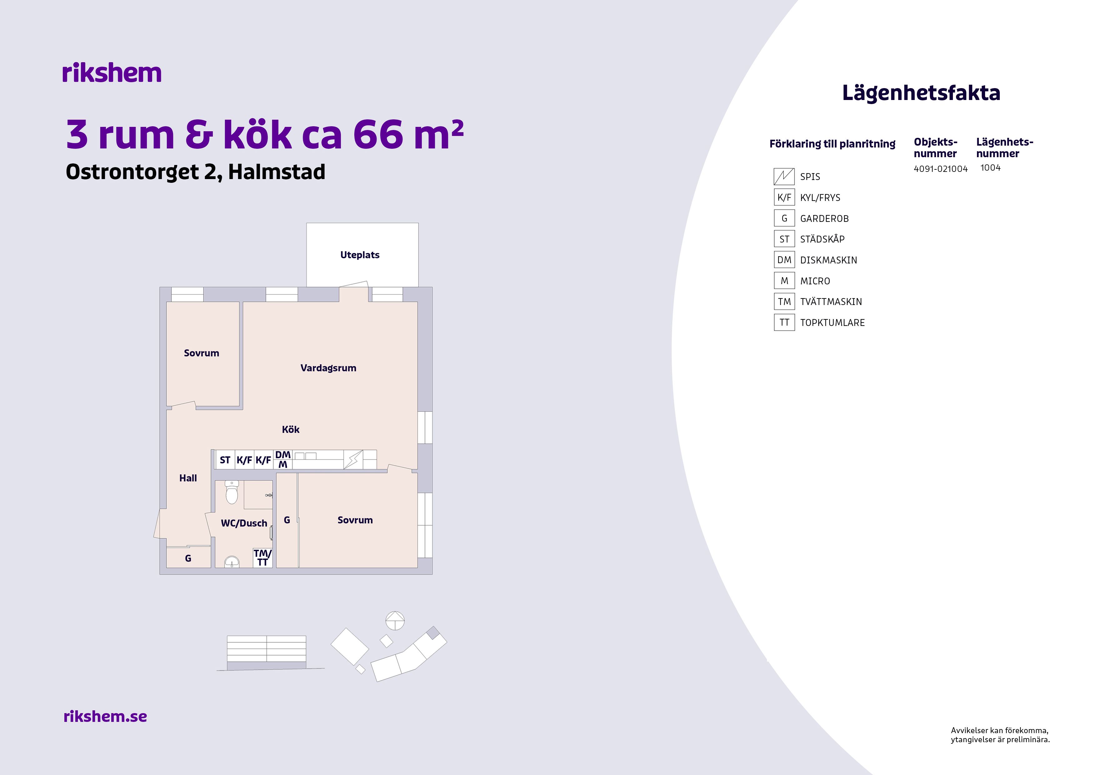 Rikshem reserverar sig mot eventuella fel eller avvikelser som kan förekomma i lägenhetsannonsen eller i planritningen.