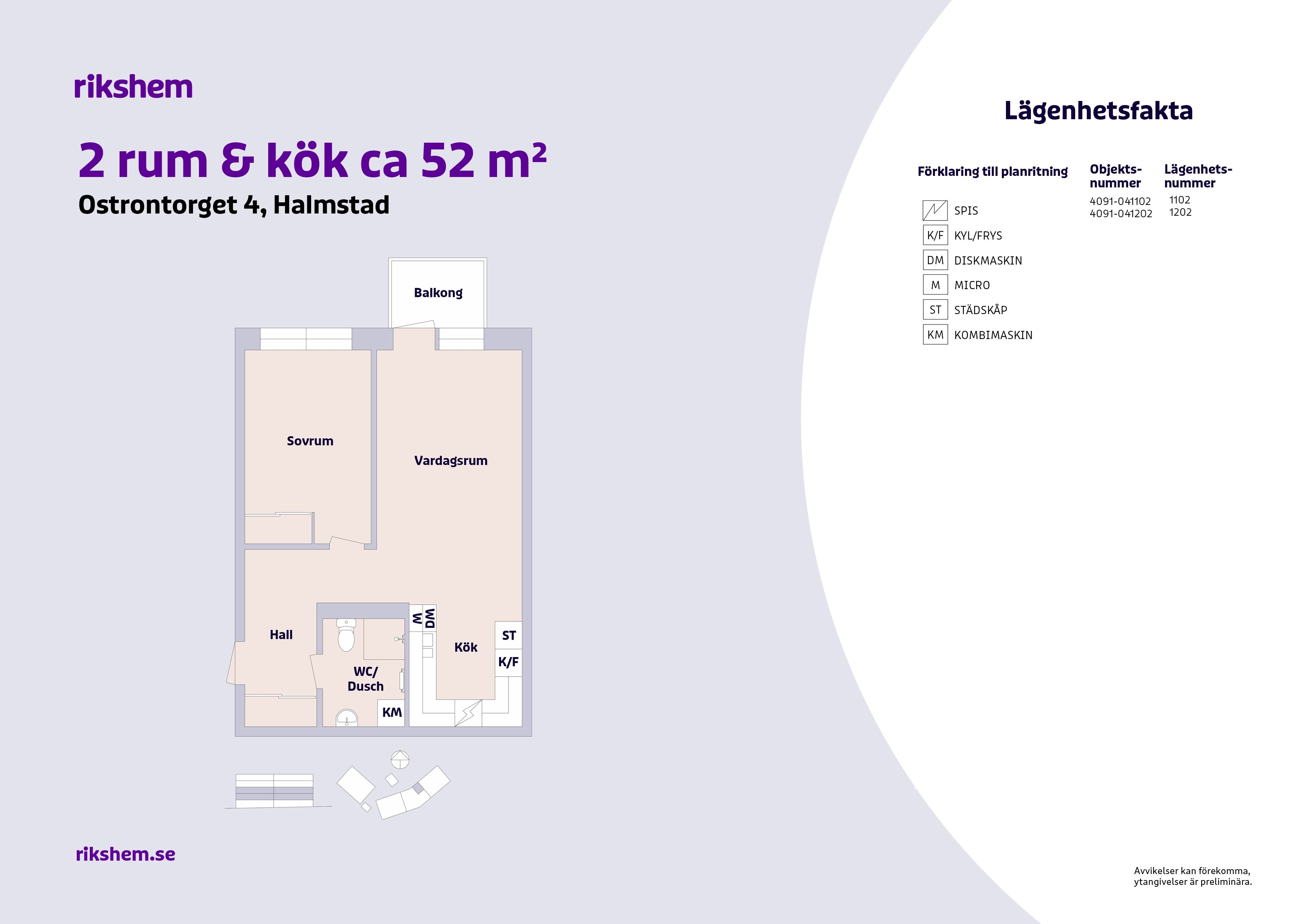 Rikshem reserverar sig mot eventuella fel eller avvikelser som kan förekomma i lägenhetsannonsen eller i planritningen.