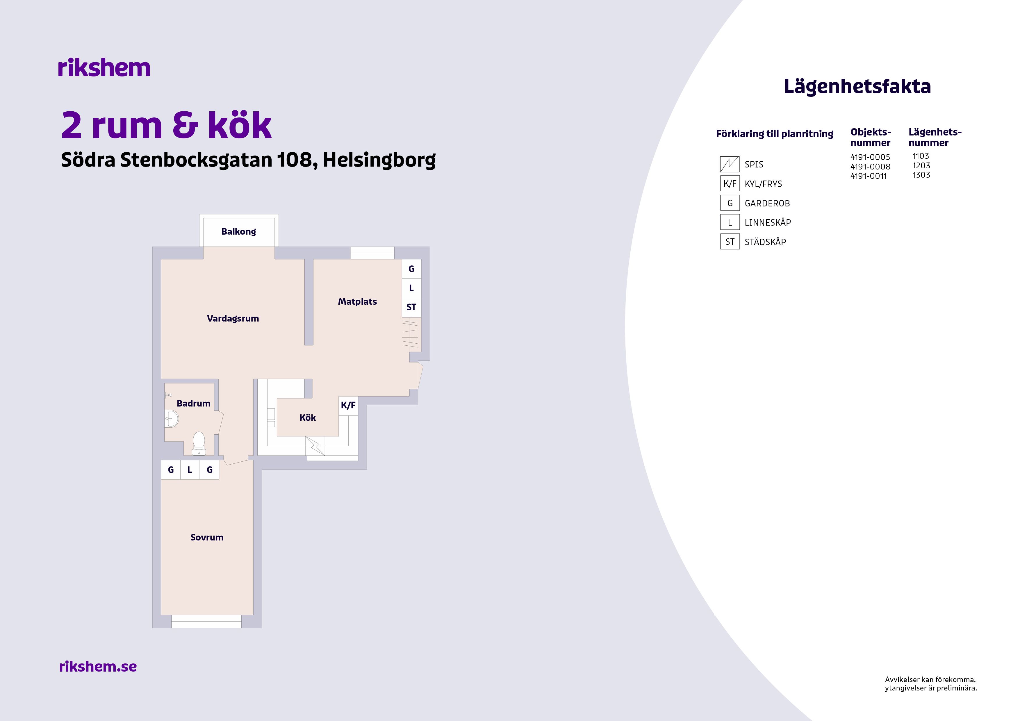 Rikshem reserverar sig mot eventuella fel eller avvikelser som kan förekomma i lägenhetsannonsen eller i planritningen.