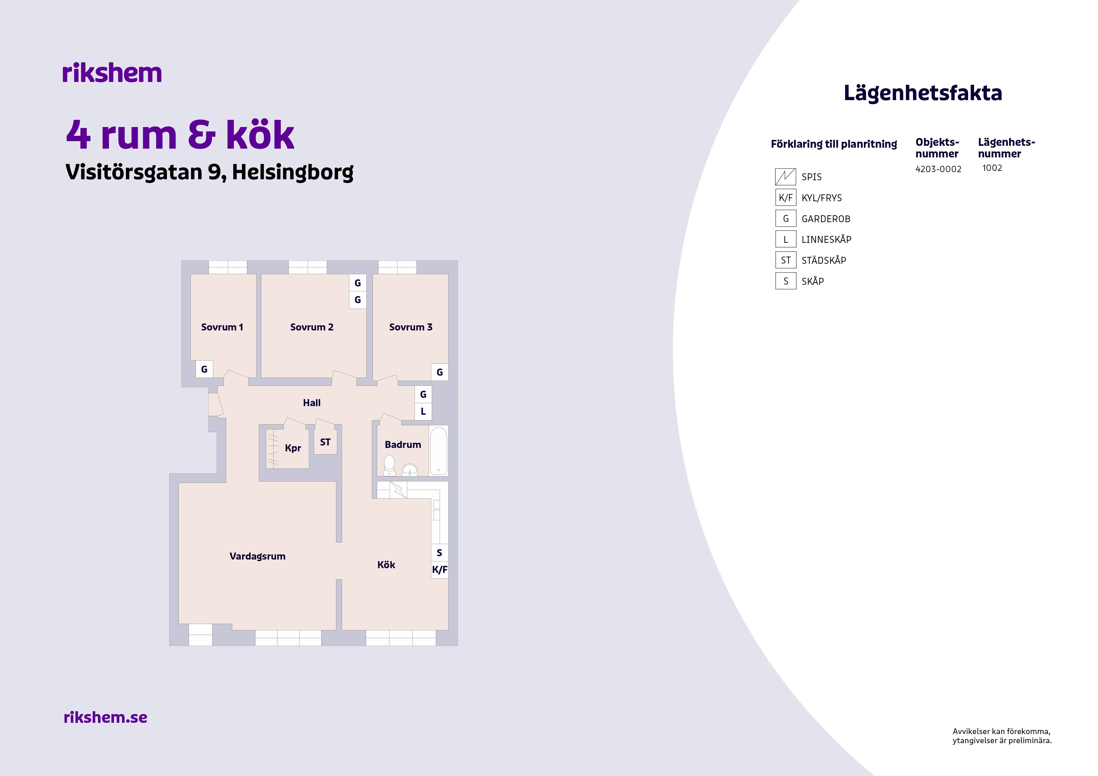 Rikshem reserverar sig mot eventuella fel eller avvikelser som kan förekomma i lägenhetsannonsen eller i planritningen.