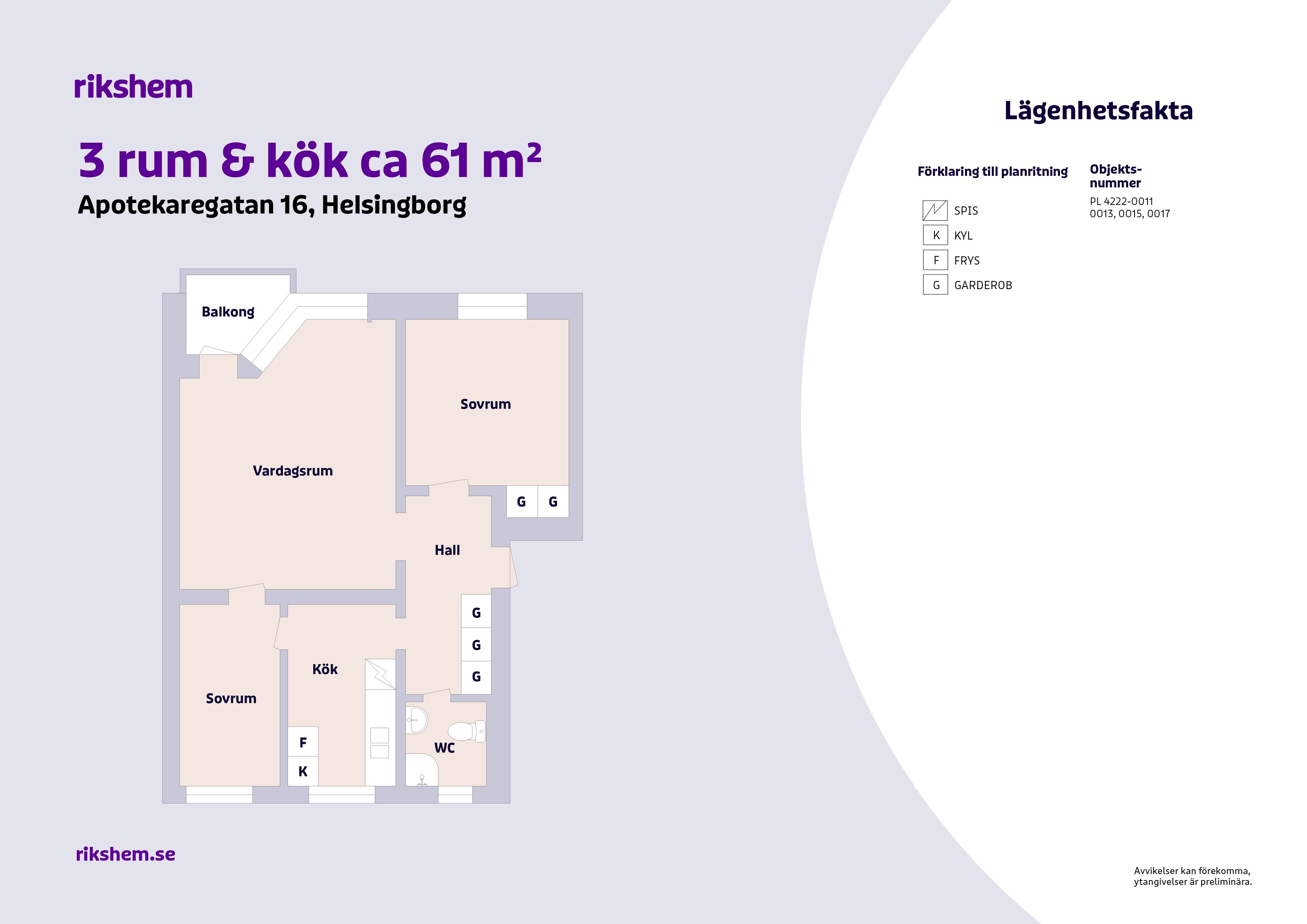 Rikshem reserverar sig mot eventuella fel eller avvikelser som kan förekomma i lägenhetsannonsen eller i planritningen.
