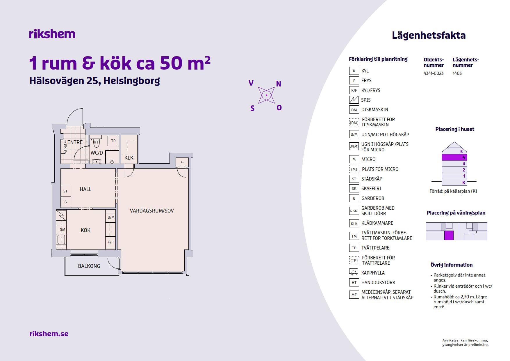 Rikshem reserverar sig mot eventuella fel eller avvikelser som kan förekomma i lägenhetsannonsen eller i planritningen.