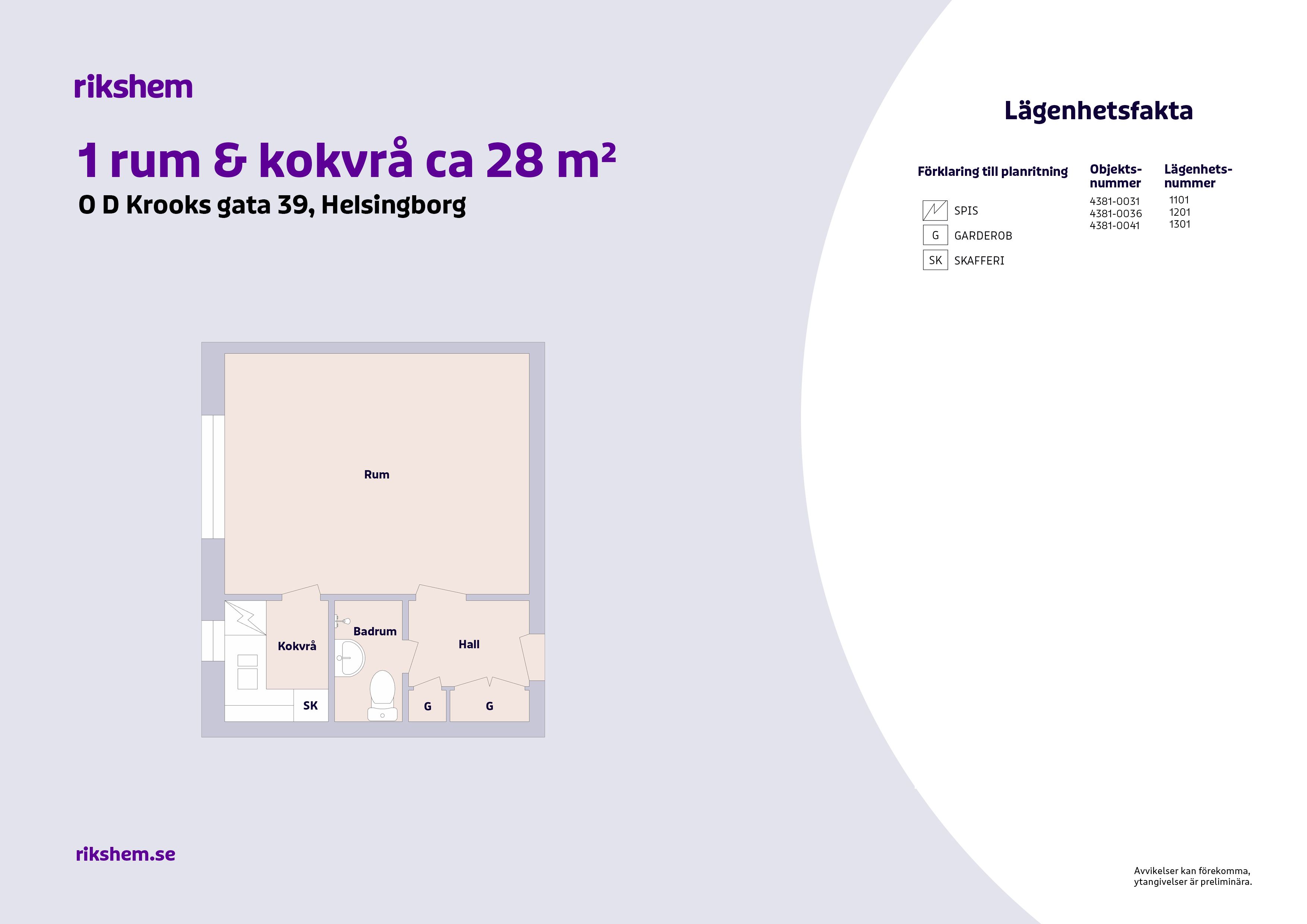 Rikshem reserverar sig mot eventuella fel eller avvikelser som kan förekomma i lägenhetsannonsen eller i planritningen.