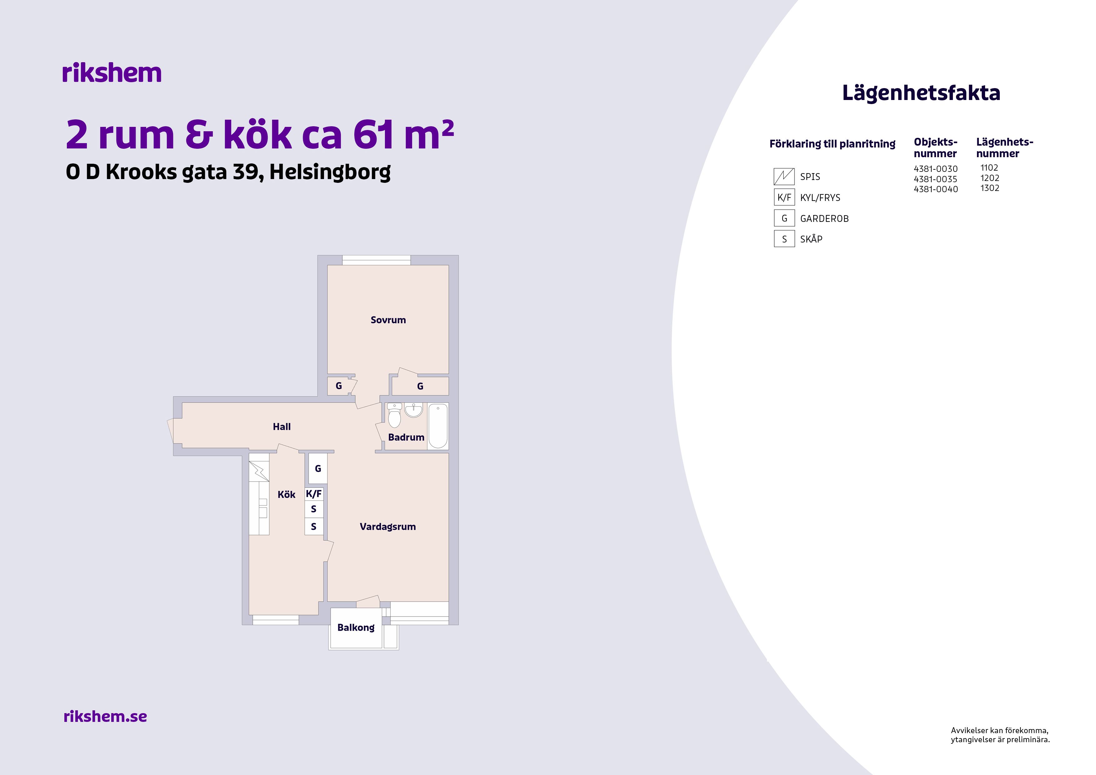 Rikshem reserverar sig mot eventuella fel eller avvikelser som kan förekomma i lägenhetsannonsen eller i planritningen.