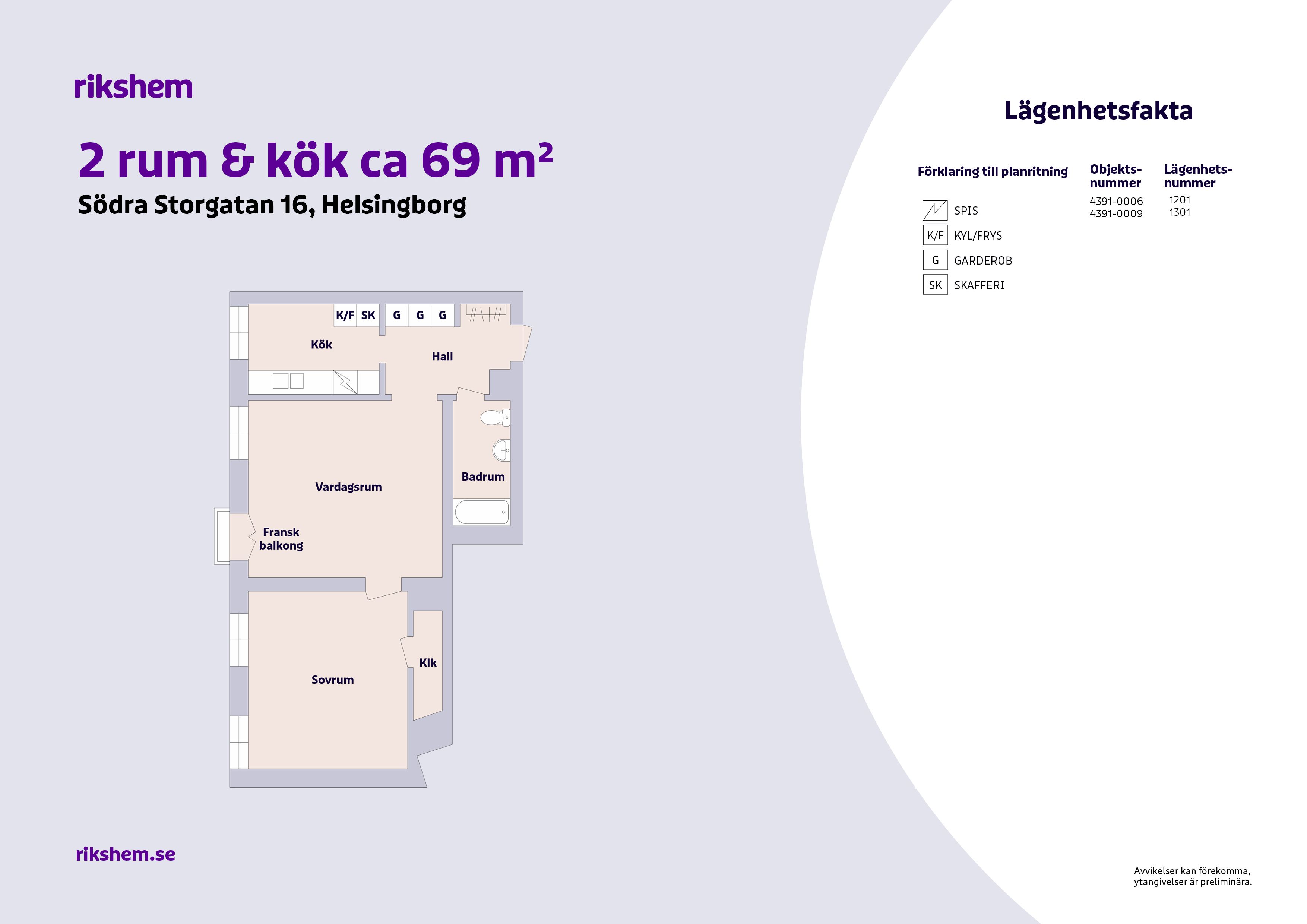 Rikshem reserverar sig mot eventuella fel eller avvikelser som kan förekomma i lägenhetsannonsen eller i planritningen.