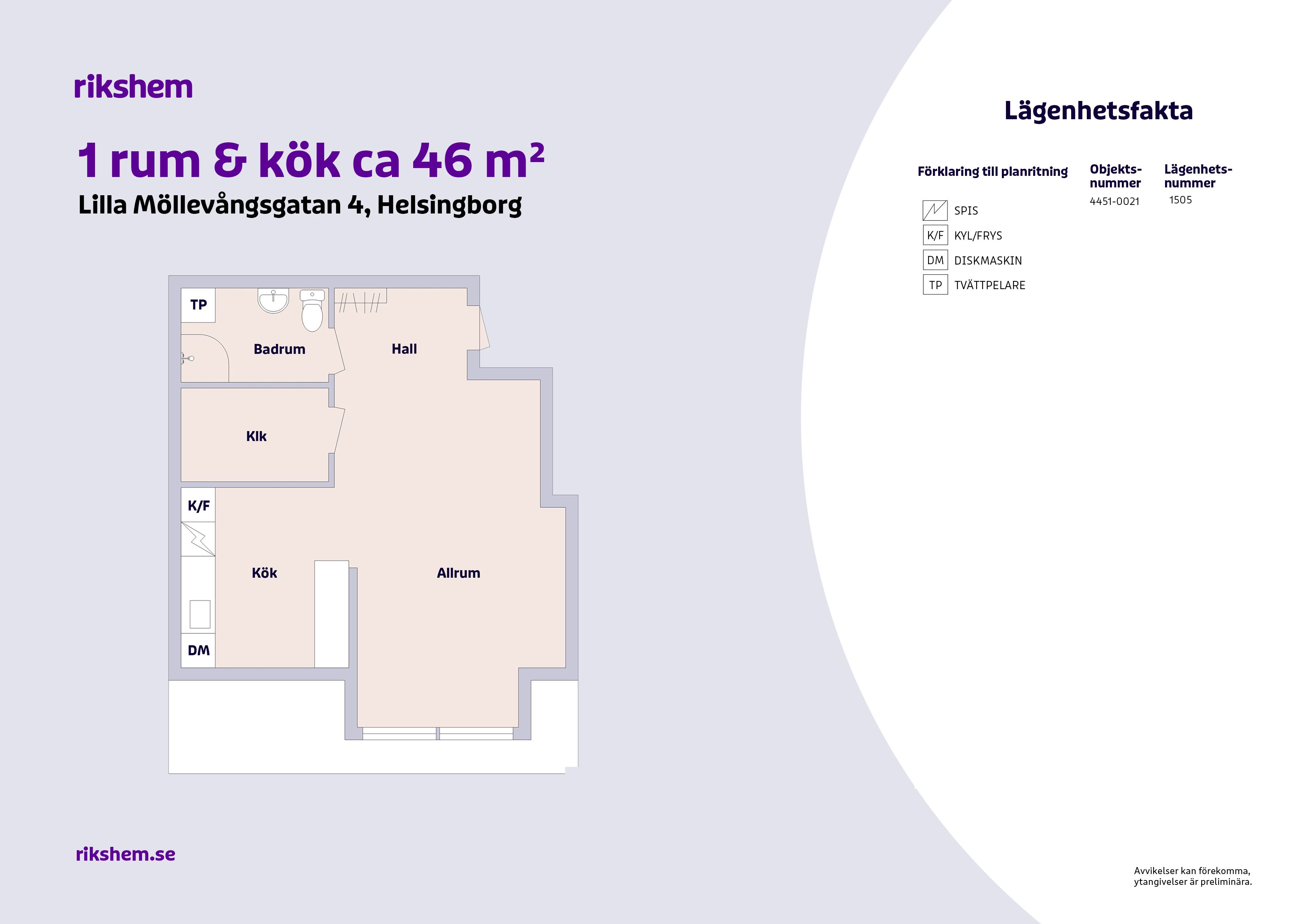 Rikshem reserverar sig mot eventuella fel eller avvikelser som kan förekomma i lägenhetsannonsen eller i planritningen.