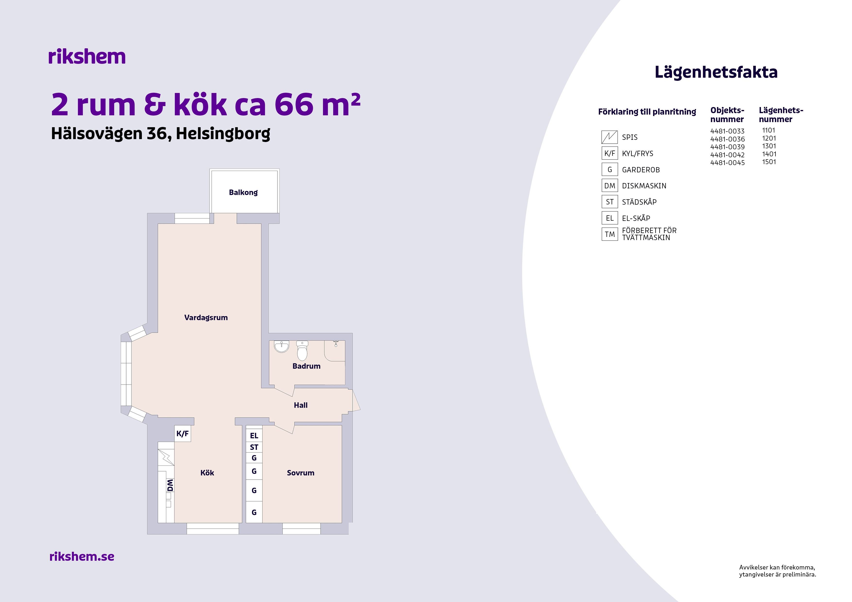 Rikshem reserverar sig mot eventuella fel eller avvikelser som kan förekomma i lägenhetsannonsen eller i planritningen.