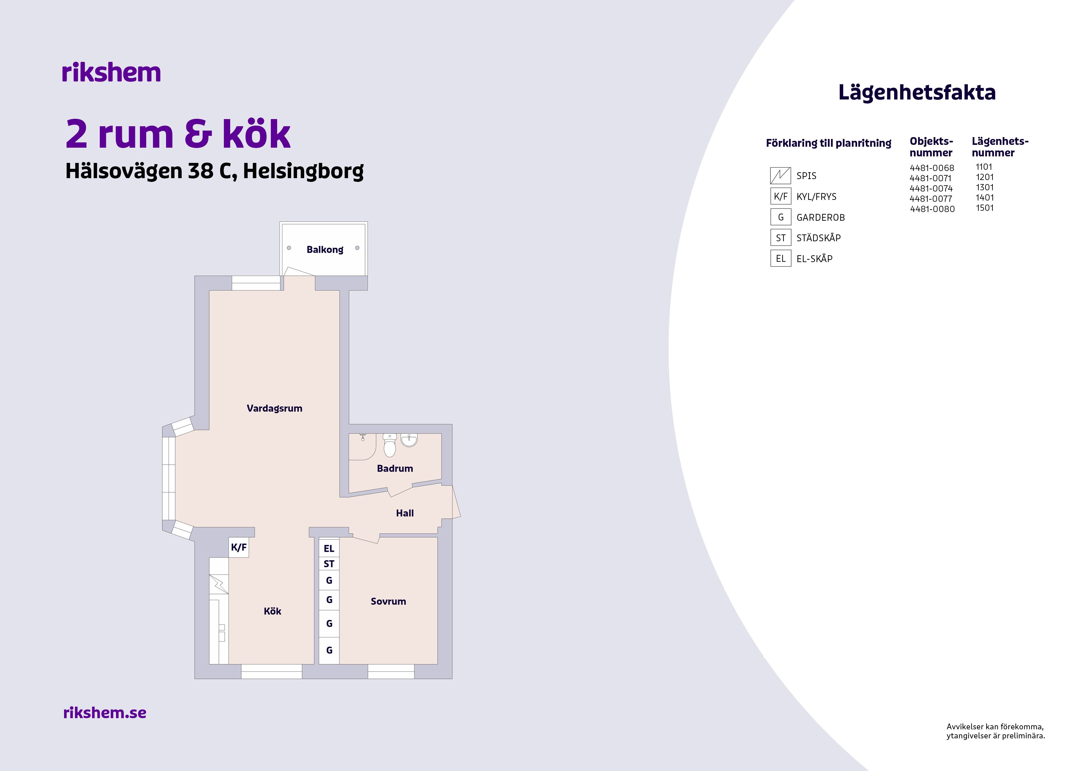 Rikshem reserverar sig mot eventuella fel eller avvikelser som kan förekomma i lägenhetsannonsen eller i planritningen.
