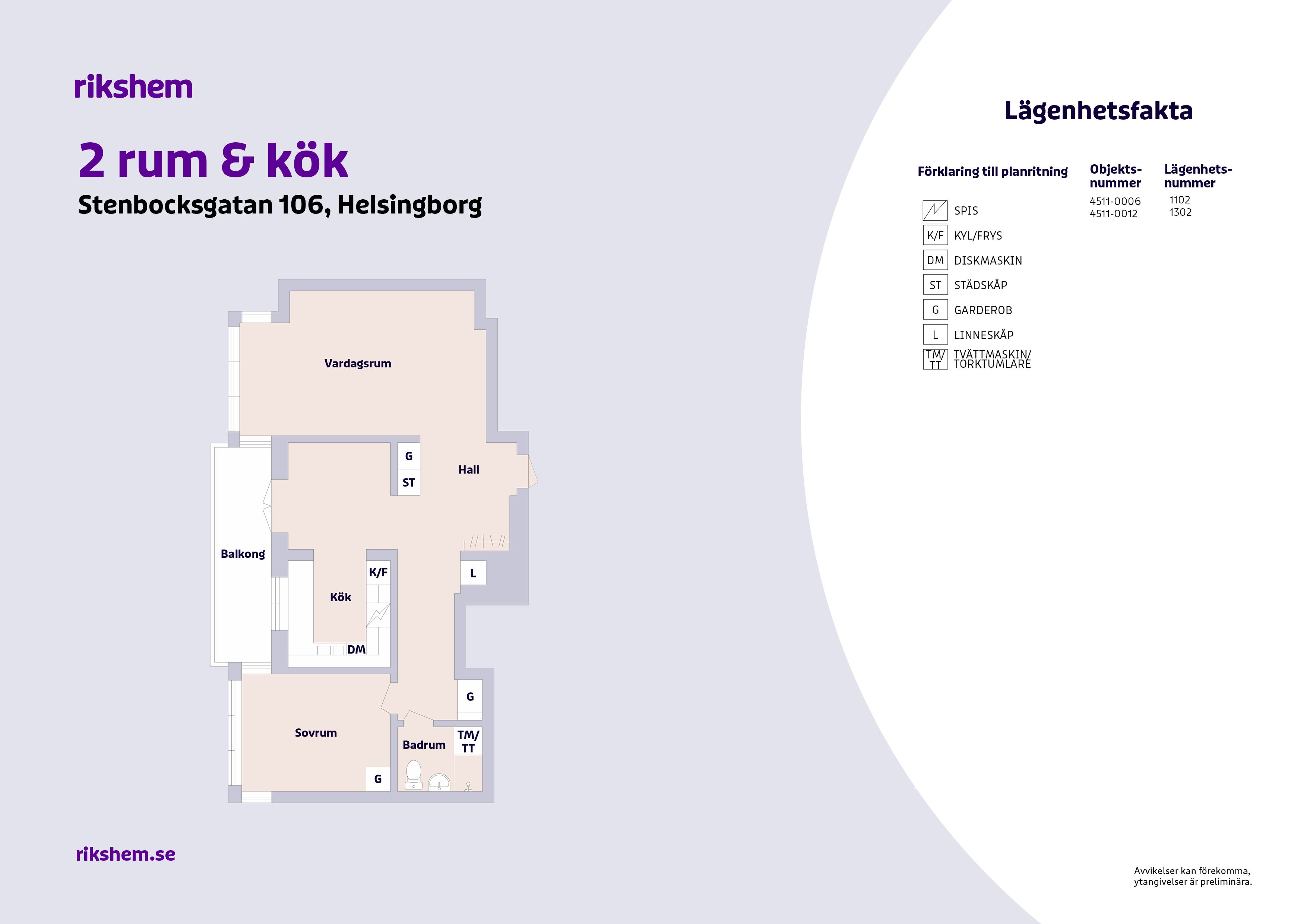 Rikshem reserverar sig mot eventuella fel eller avvikelser som kan förekomma i lägenhetsannonsen eller i planritningen.