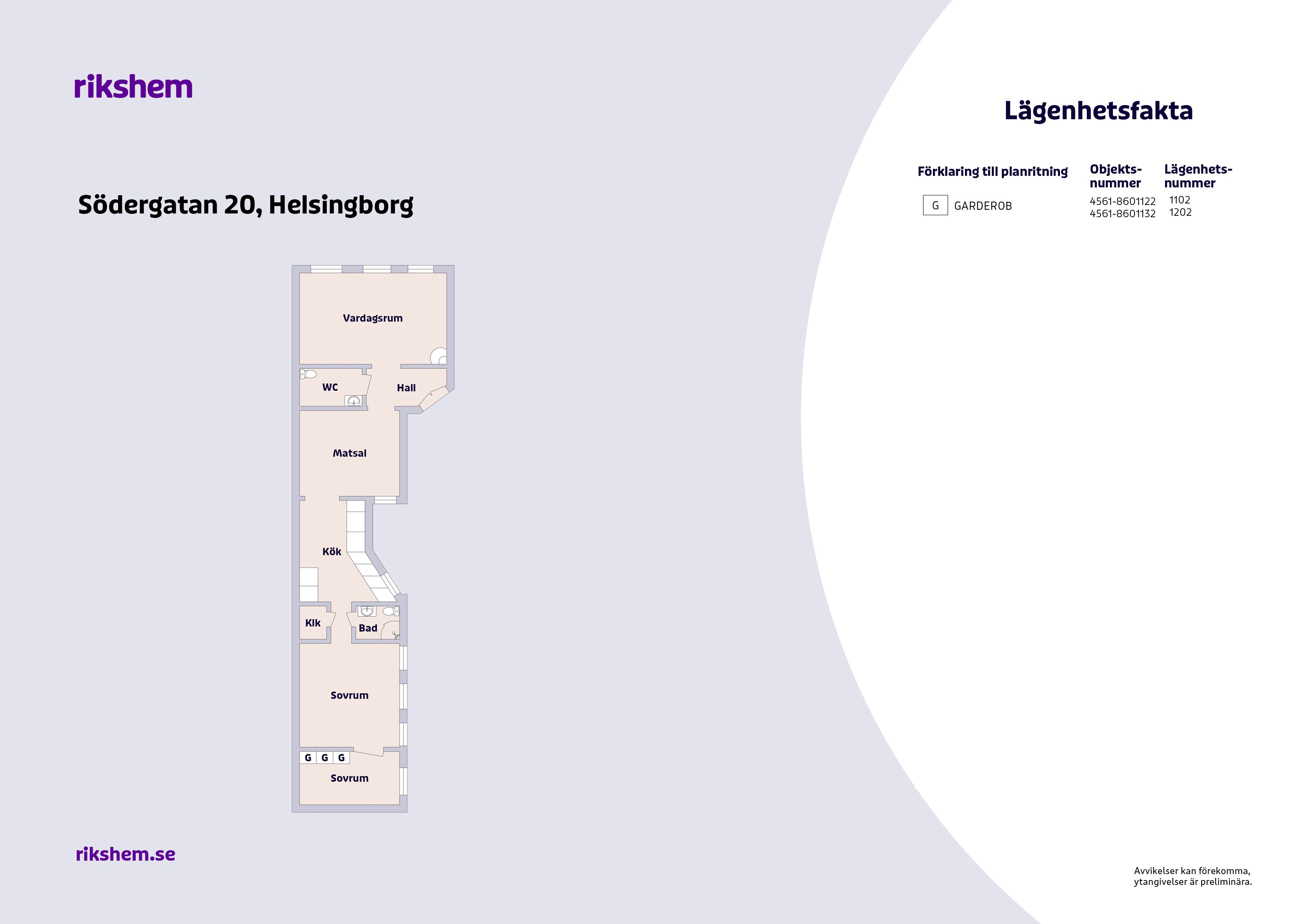 Rikshem reserverar sig mot eventuella fel eller avvikelser som kan förekomma i lägenhetsannonsen eller i planritningen.