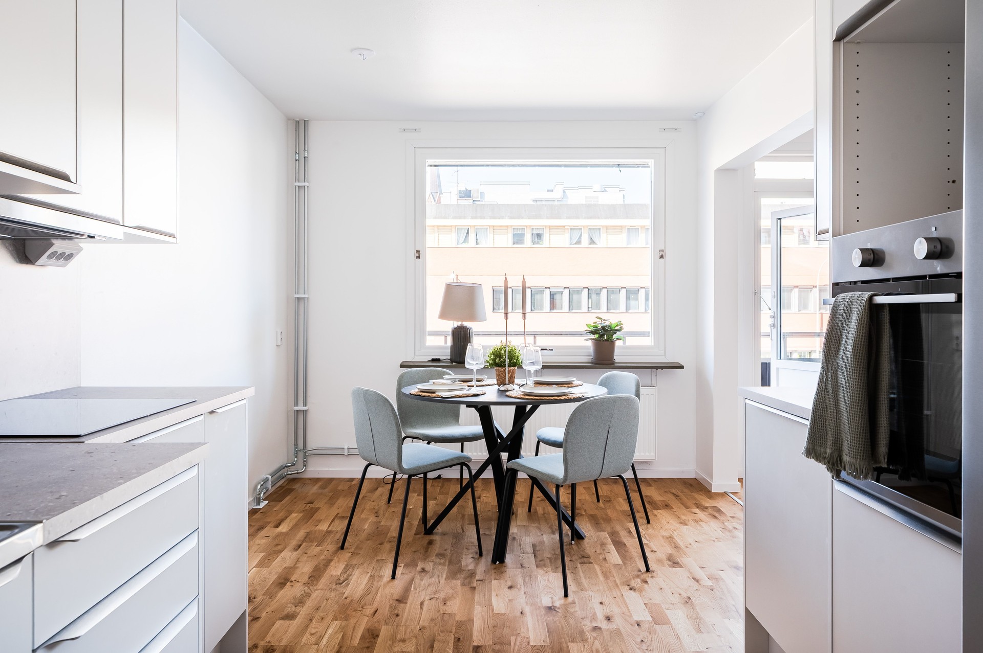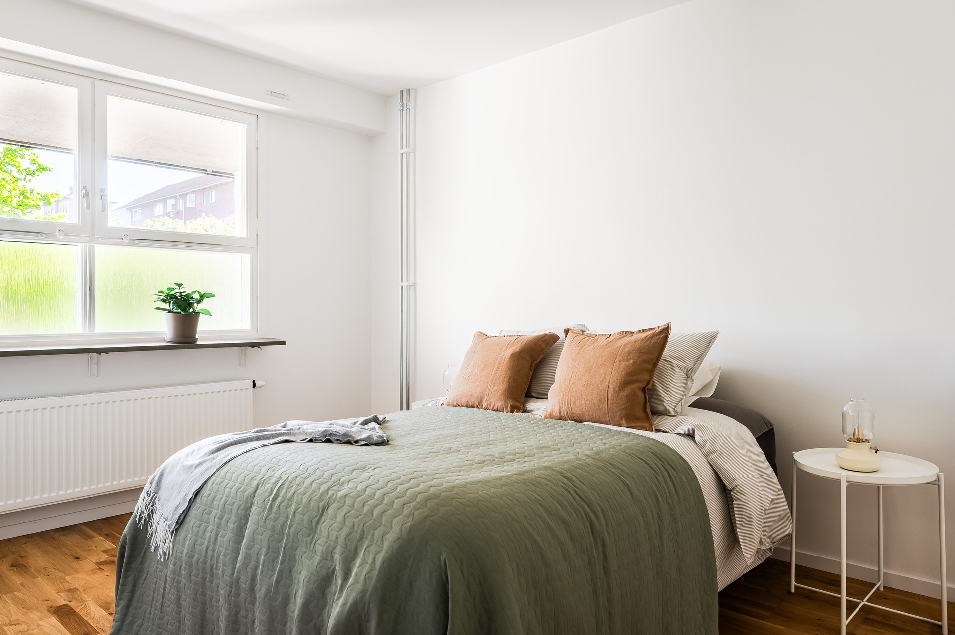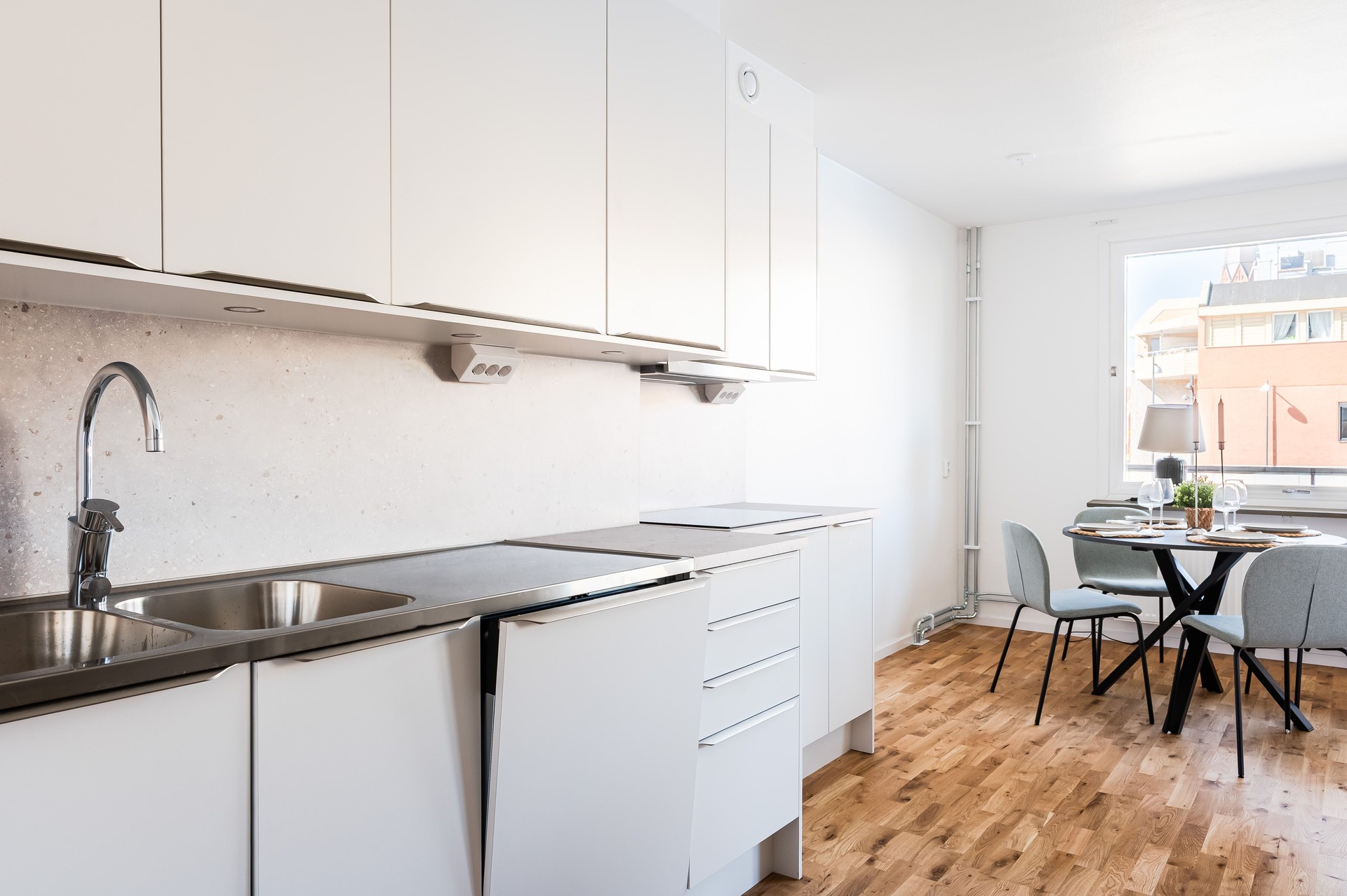 Hela lägenheten renoverades under våren 2025. Köket har släta vita luckor och nya rostfria energisnåla vitvaror såsom glaskeramikhäll, inbyggnadsugn, hel kyl och frys i rostfritt och utdragbar spisfläkt samt integrerad diskmaskin. Badrummet har ett vackert varmgrått klinkergolv med golv-värme. Vita helkaklade väggar. Duschutrymmet har smidiga glasdörrar som kan vikas inåt och nytt handfat med tillhörande vitt underskåp samt ny spegel. Innertak i badrum har LED-spotlights. Tvättmaskin och torktumlare finns. Hela lägenheten har ekparkett på golvet med undantag för hallen som får grått kompositgolv, alla väggar är fräscht vitmålade och fasta garderober kommer finnas. Lägenheten har säkerhetsdörr. Balkongen ligger i sydvästläge för dig som gillar att sitta ta in solens strålar så många timmar som det bara går.