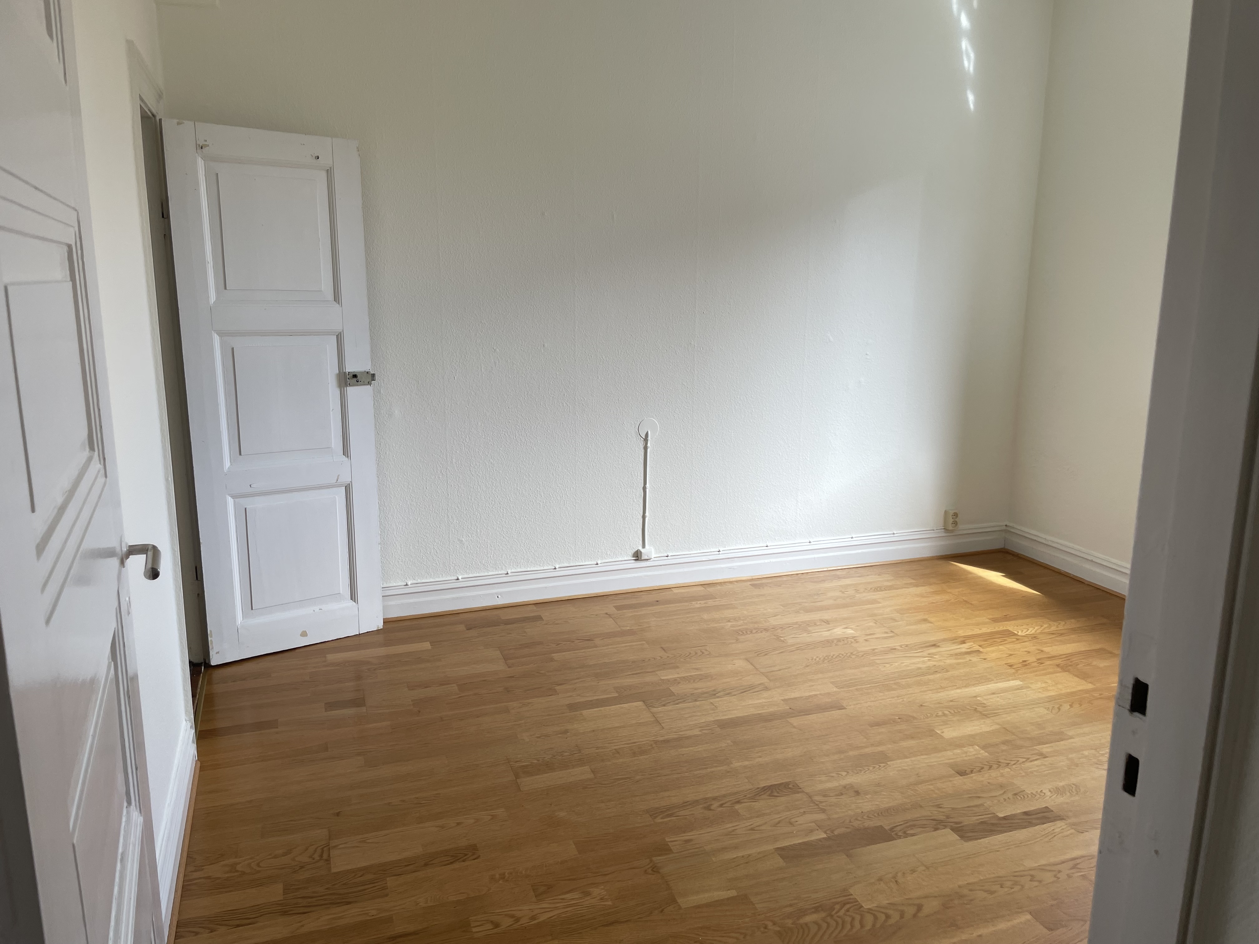 Lägenheten har säkerhetsdörr, stora rum med högt i tak med vita väggar i hela lägenheten. Kök och badrum är av äldre standard.