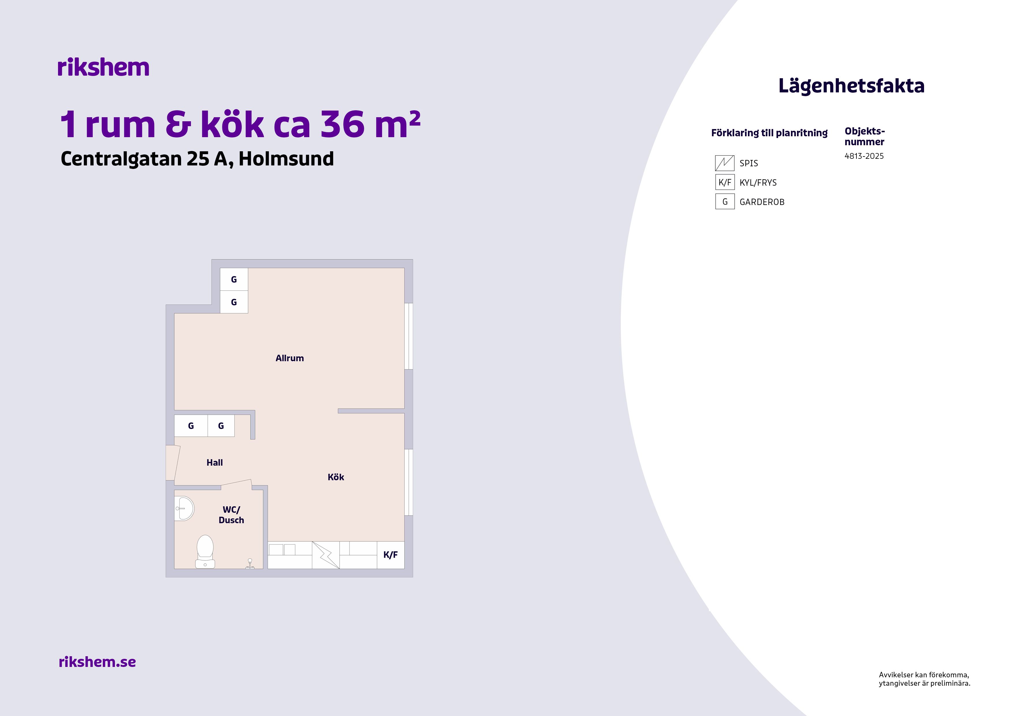 Rikshem reserverar sig mot eventuella fel eller avvikelser som kan förekomma i lägenhetsannonsen eller i planritningen.
