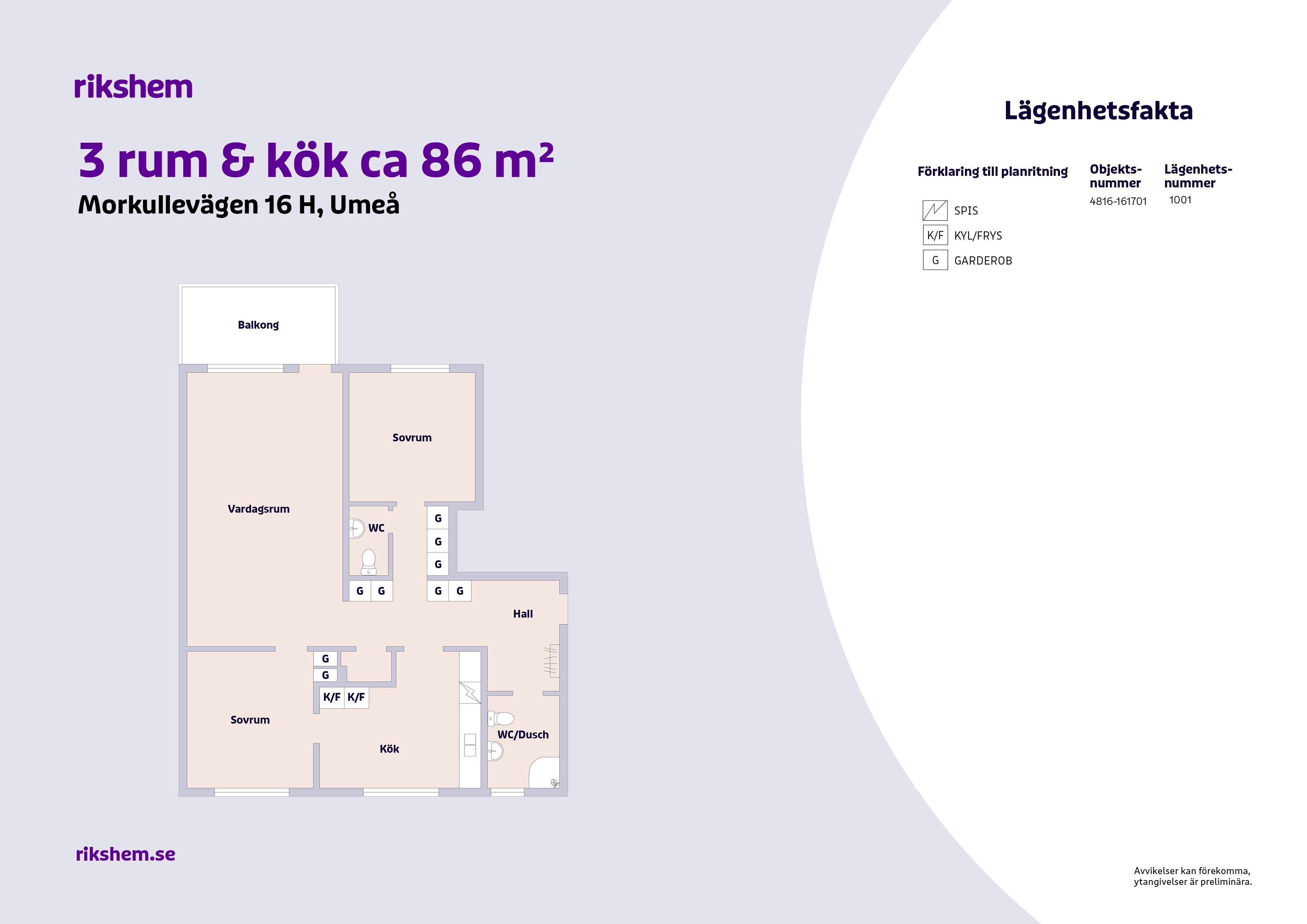 Rikshem reserverar sig mot eventuella fel eller avvikelser som kan förekomma i lägenhetsannonsen eller i planritningen.