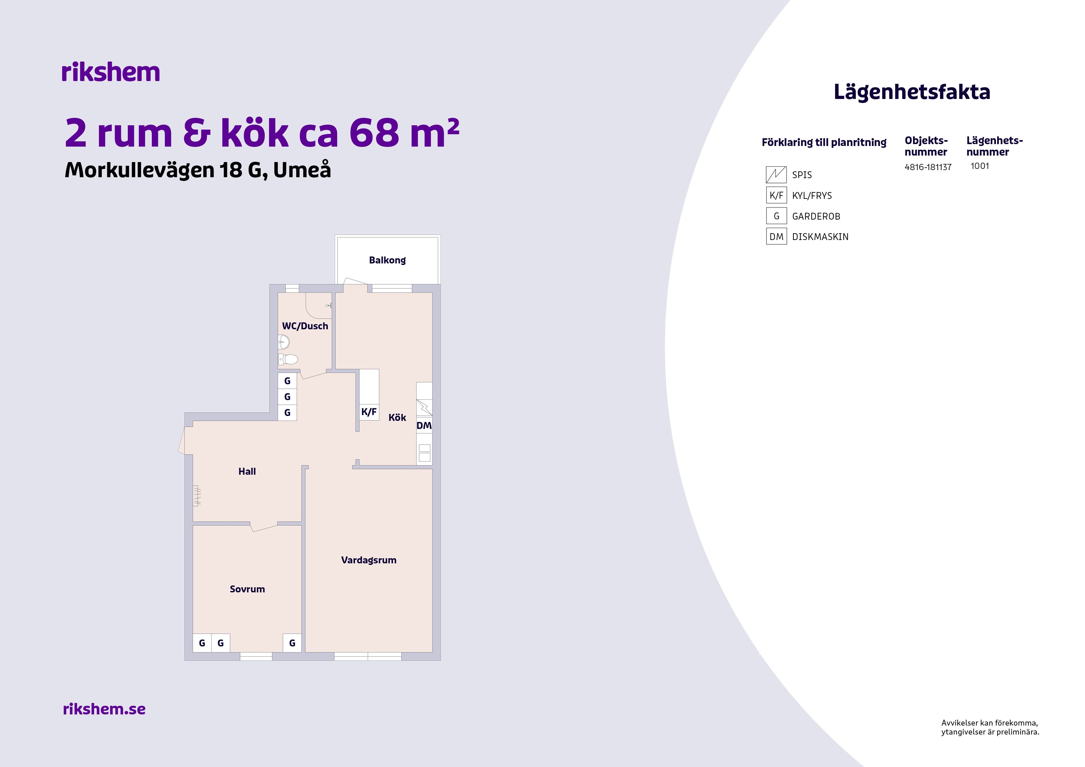 Rikshem reserverar sig mot eventuella fel eller avvikelser som kan förekomma i lägenhetsannonsen eller i planritningen.