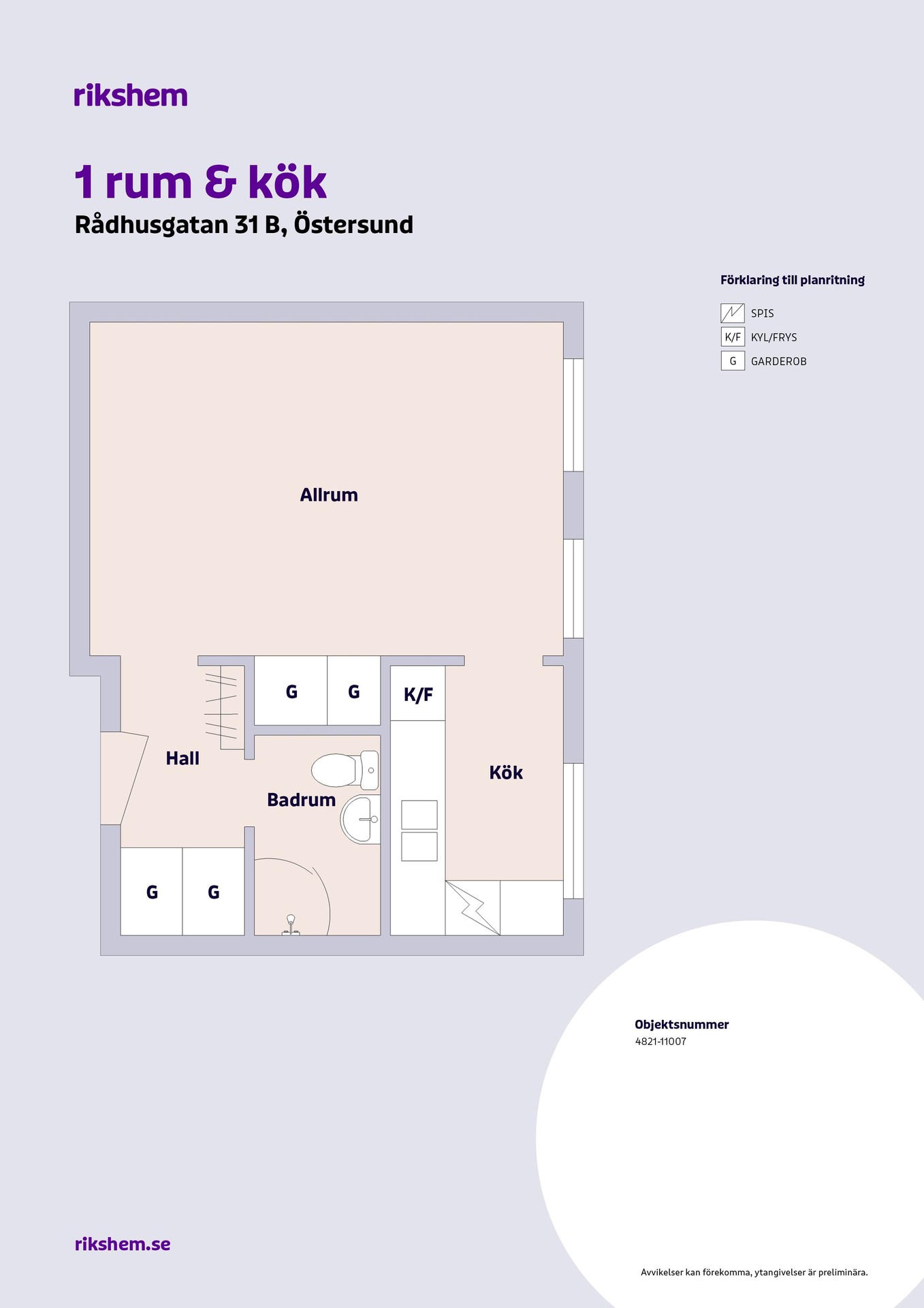 Rikshem reserverar sig mot eventuella fel eller avvikelser som kan förekomma i lägenhetsannonsen eller i planritningen.