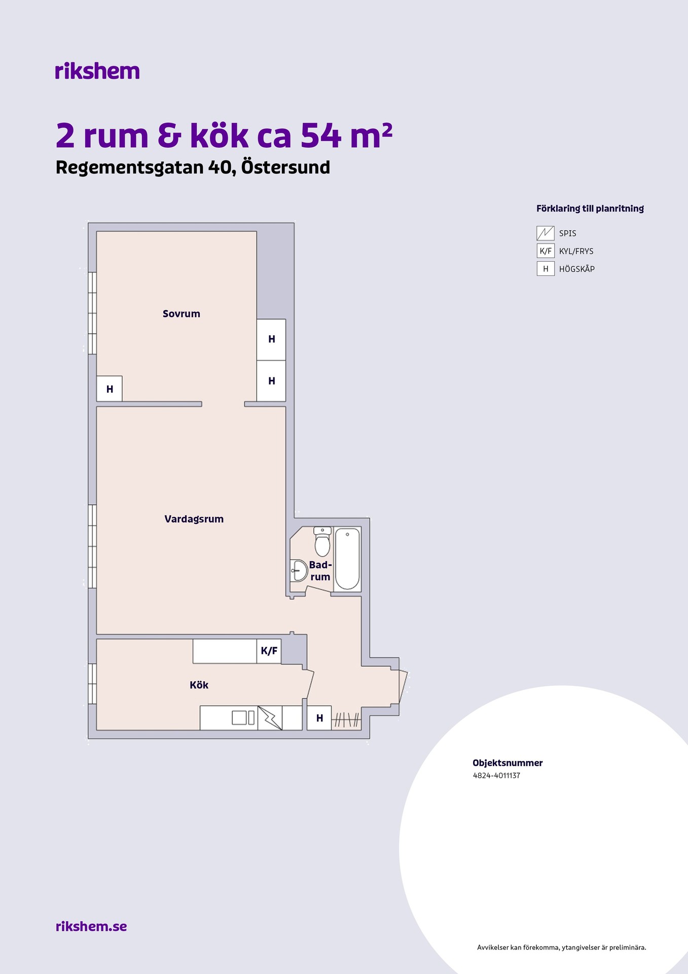 Rikshem reserverar sig mot eventuella fel eller avvikelser som kan förekomma i lägenhetsannonsen eller i planritningen.