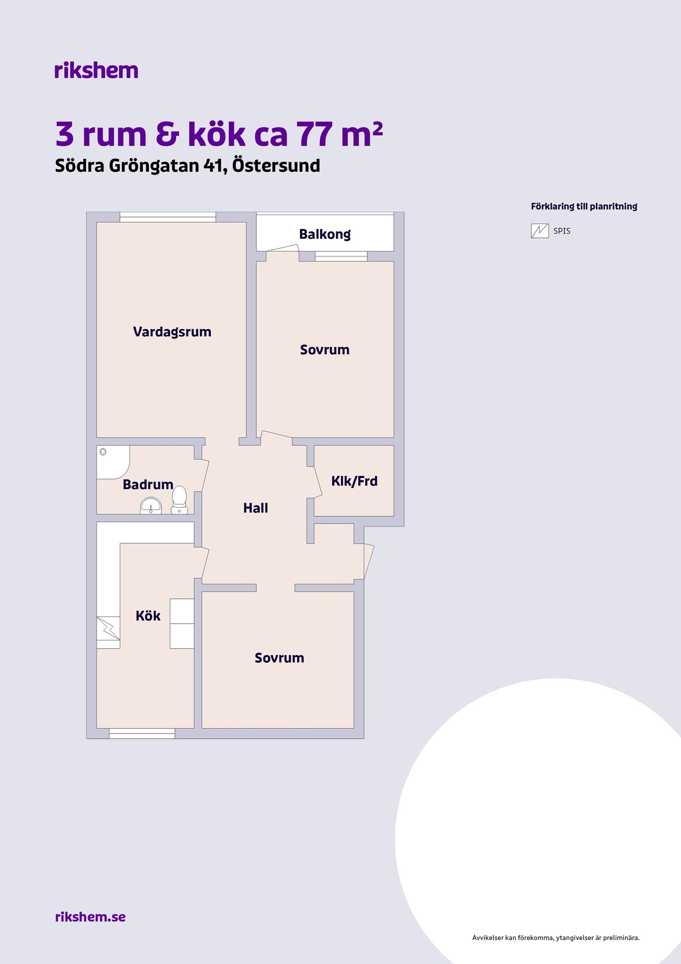 Rikshem reserverar sig mot eventuella fel eller avvikelser som kan förekomma i lägenhetsannonsen eller i planritningen.