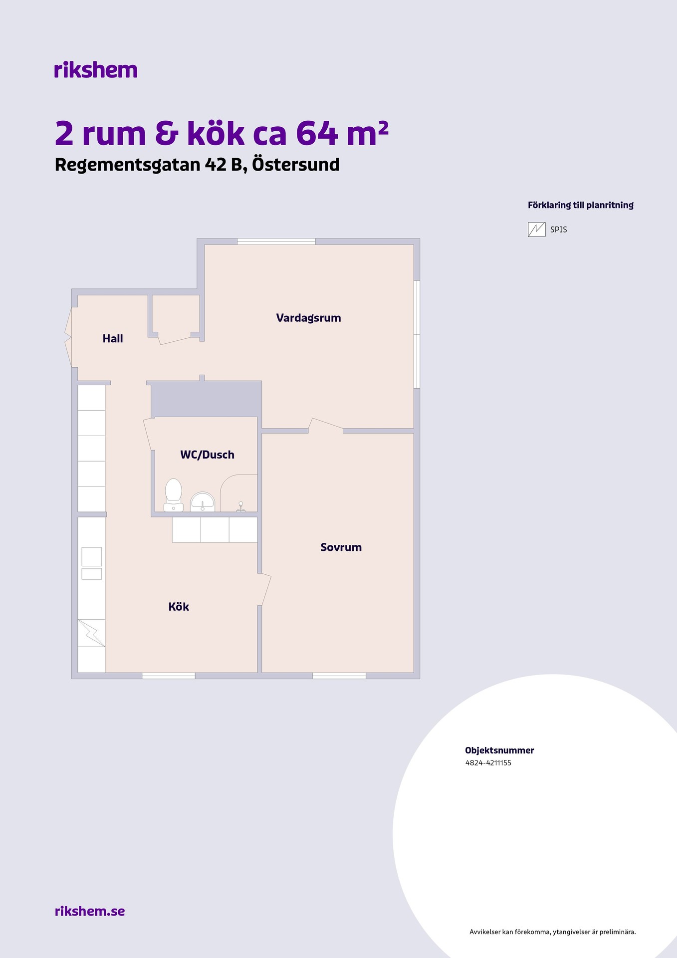 Rikshem reserverar sig mot eventuella fel eller avvikelser som kan förekomma i lägenhetsannonsen eller i planritningen.