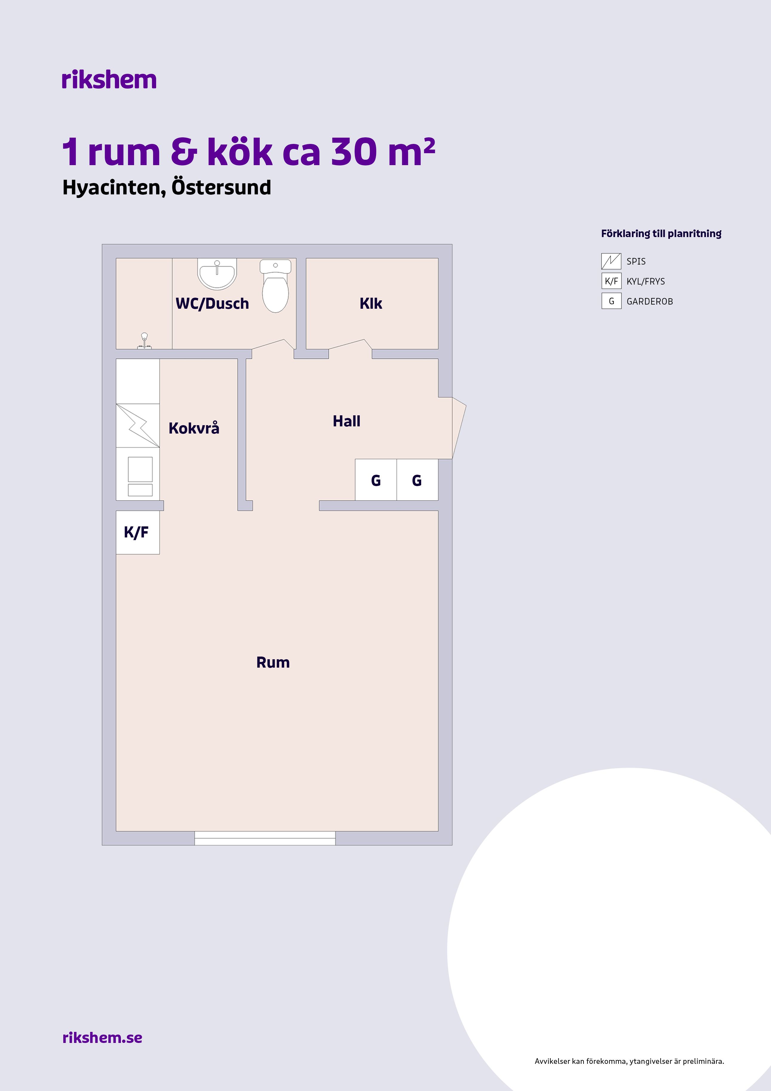 Rikshem reserverar sig mot eventuella fel eller avvikelser som kan förekomma i lägenhetsannonsen eller i planritningen.