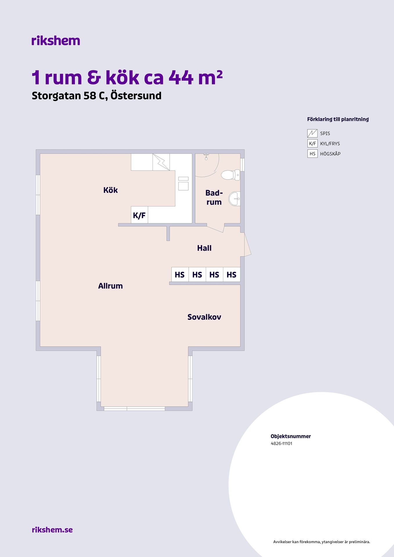 Rikshem reserverar sig mot eventuella fel eller avvikelser som kan förekomma i lägenhetsannonsen eller i planritningen.