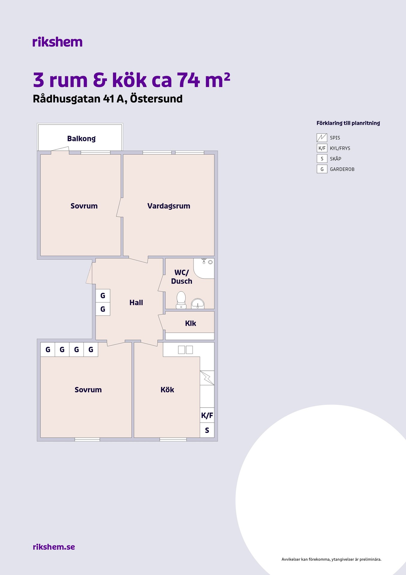 Rikshem reserverar sig mot eventuella fel eller avvikelser som kan förekomma i lägenhetsannonsen eller i planritningen.