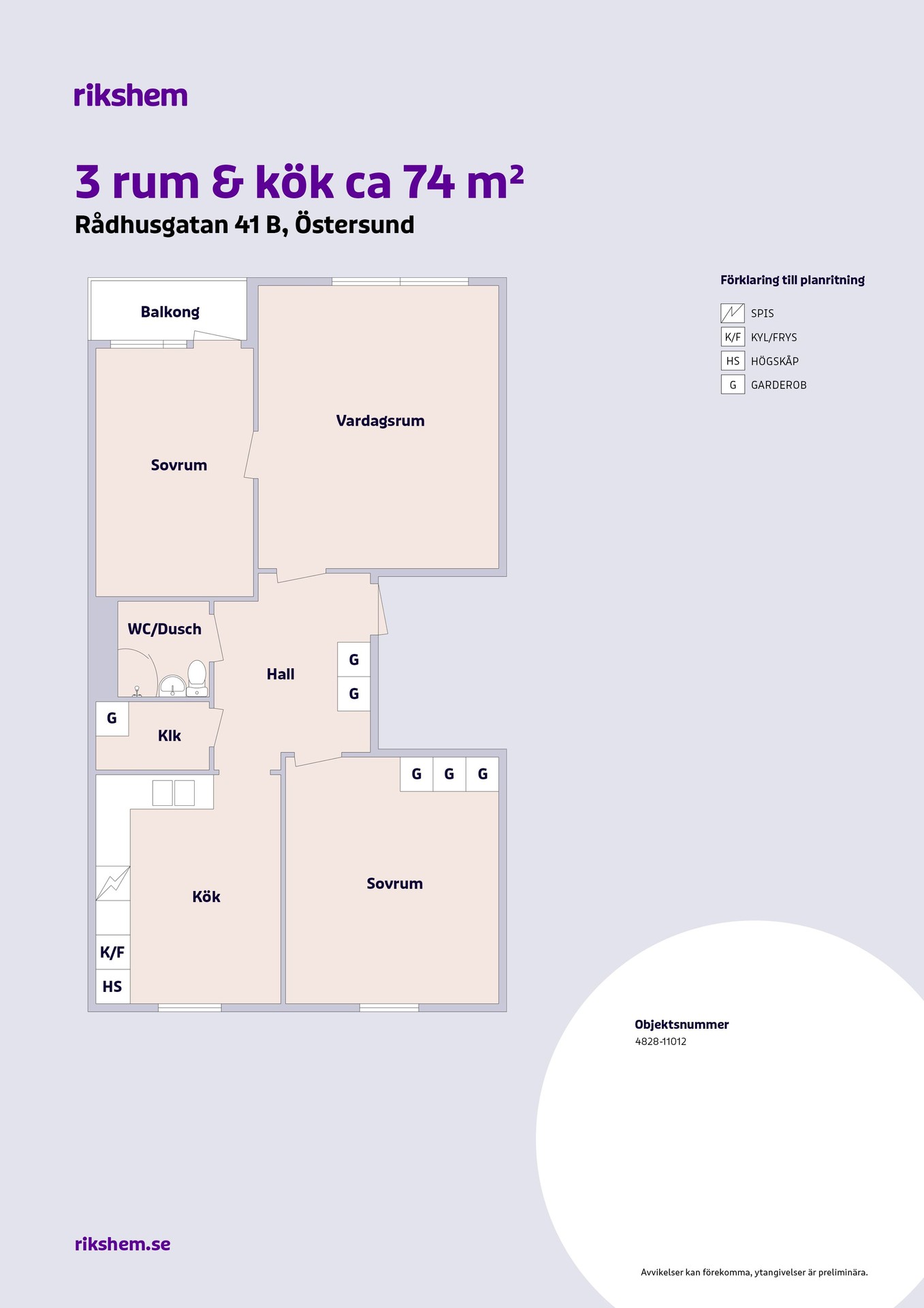 Rikshem reserverar sig mot eventuella fel eller avvikelser som kan förekomma i lägenhetsannonsen eller i planritningen.