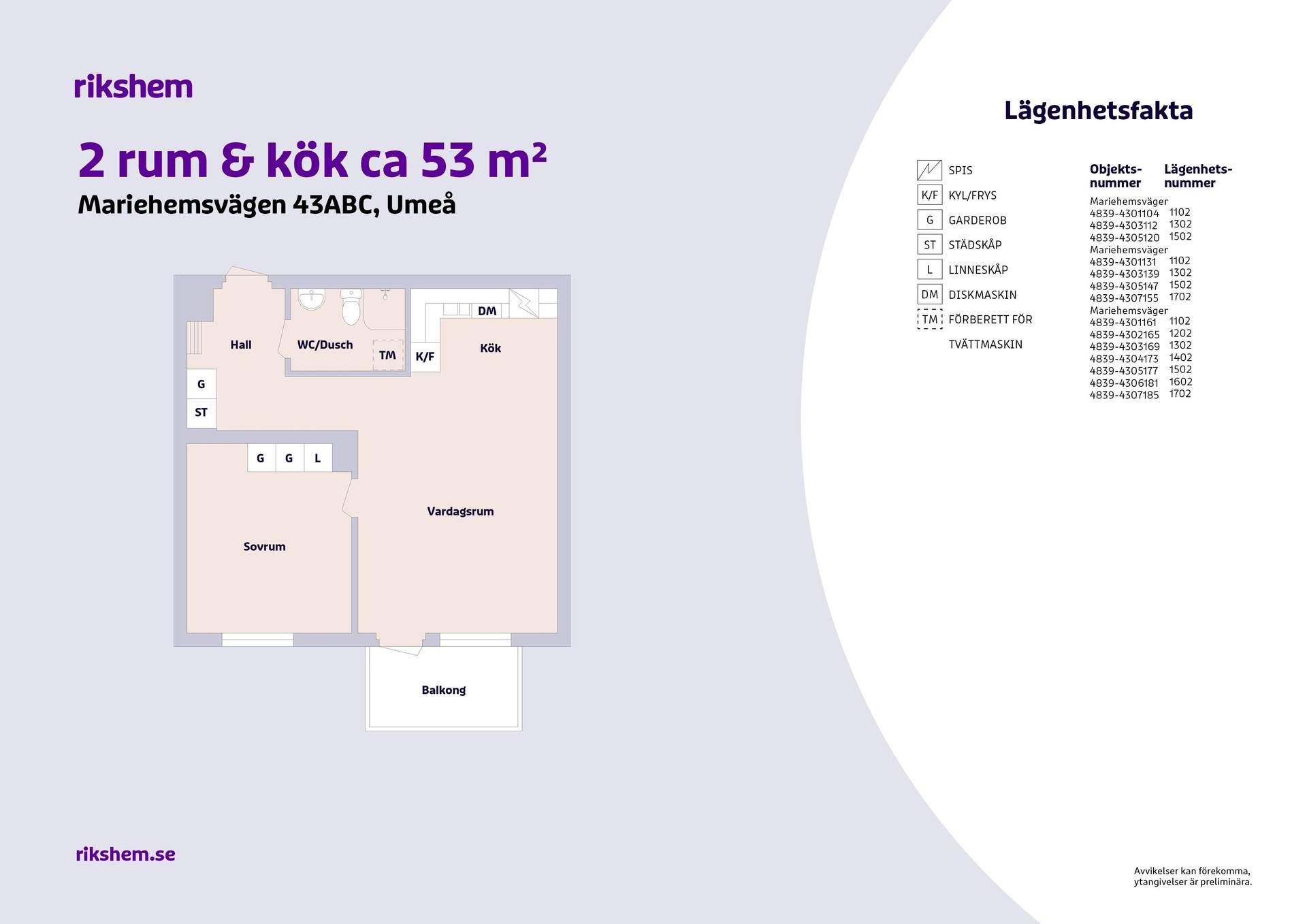 Rikshem reserverar sig mot eventuella fel eller avvikelser som kan förekomma i lägenhetsannonsen eller i planritningen.